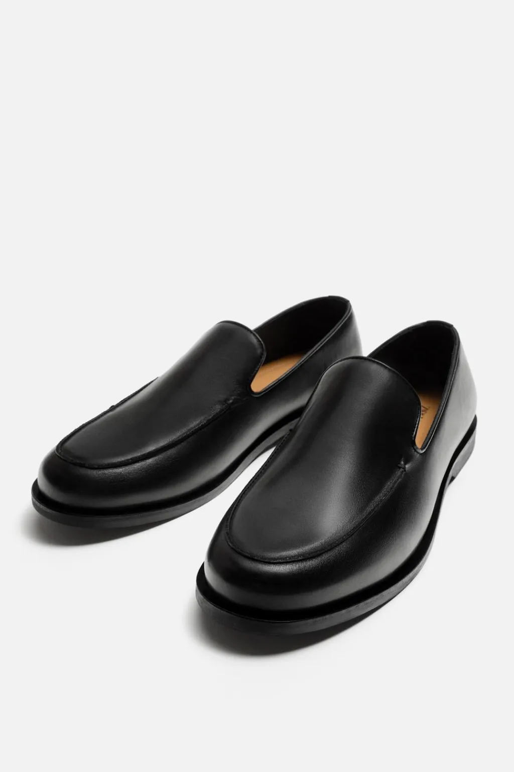 Zapato mocasín estilo slipper. Construcción en piel de alta calidad. Bordón en el empeine. Horma redonda.
