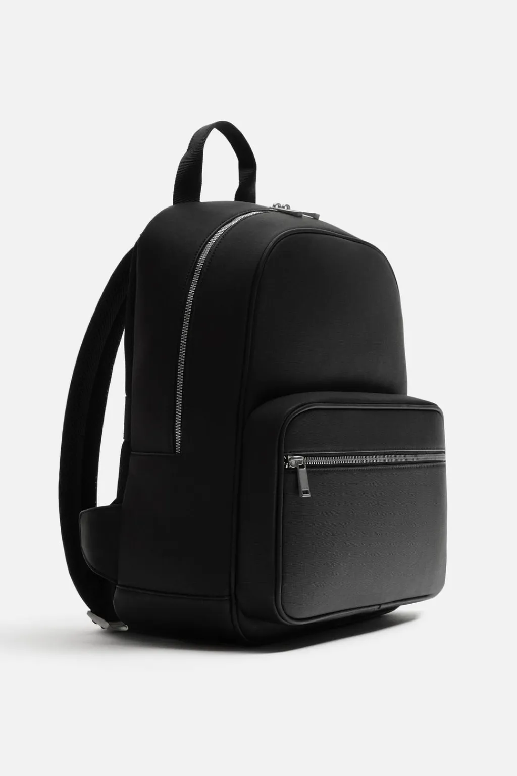 Mochila de acabado grabado. Construcción semirígida. Compartimento principal con cierre mediante cremallera y un bolsillo pequeño en su interiorEn la parte frontal cuenta con un bolsillo mediano con cierre de cremallera. La parte trasera es acolchada y tiene una banda para sujeción a maletas. Dispone de un asa de mano y dos asas de hombro ajustables y acolchadas.