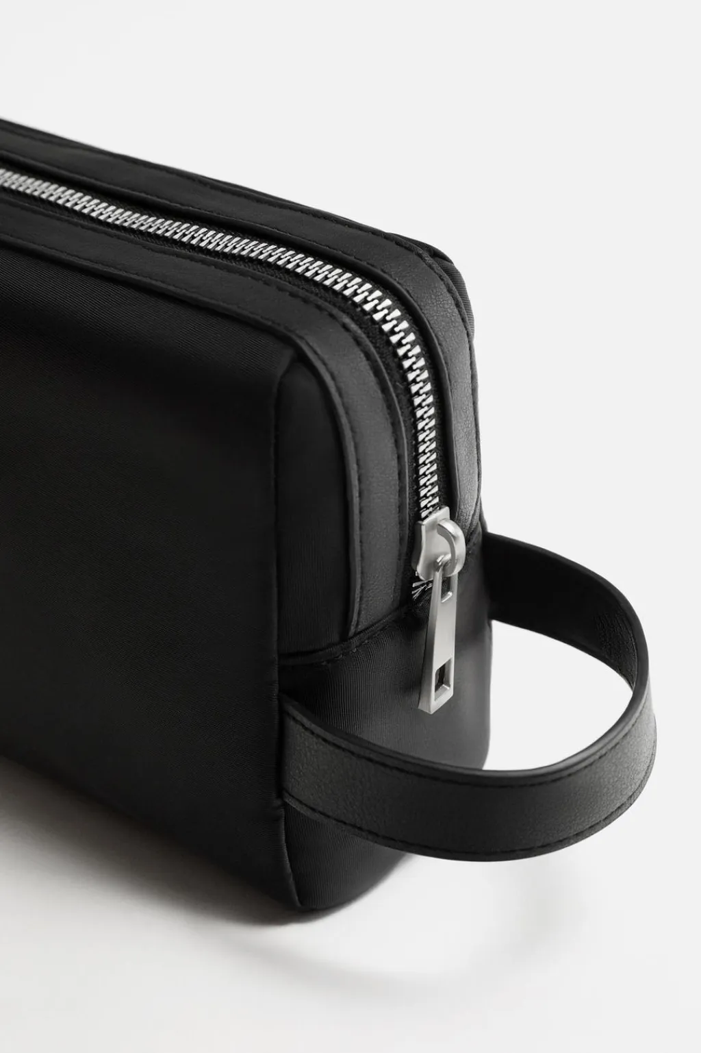 Bolsa de aseo. Fabricada en tejido de nylon. Compartimento principal con cierre mediante cremallera. El Interior cuenta con un bolsillo lateral con cierre con cremallera. Asa de mano lateral.