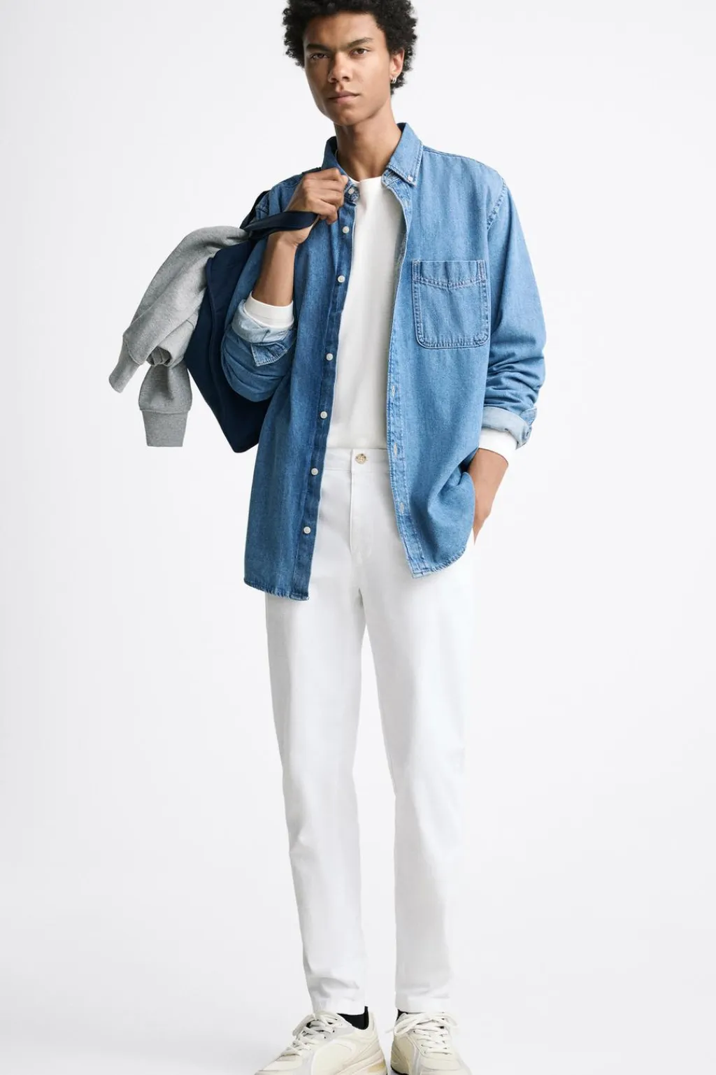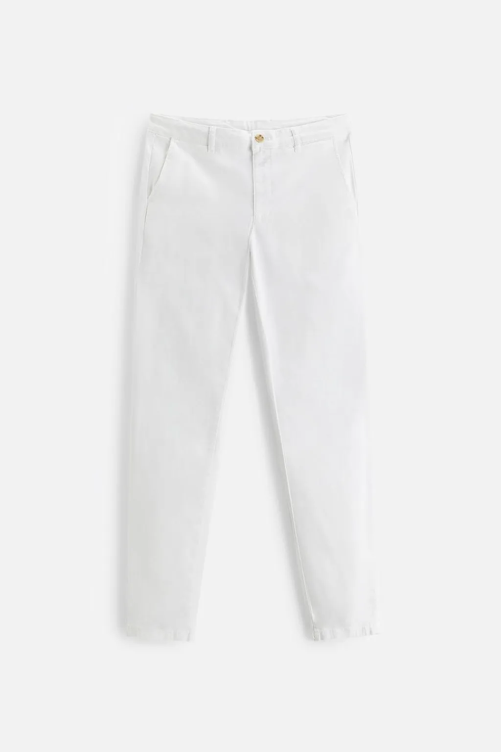 Pantalón skinny fit confeccionado en tejido con mezcla de algodón y elasticidad. Bolsillos frontales y detalle de bolsillos traseros de vivo. Cierre frontal con cremallera y botón.