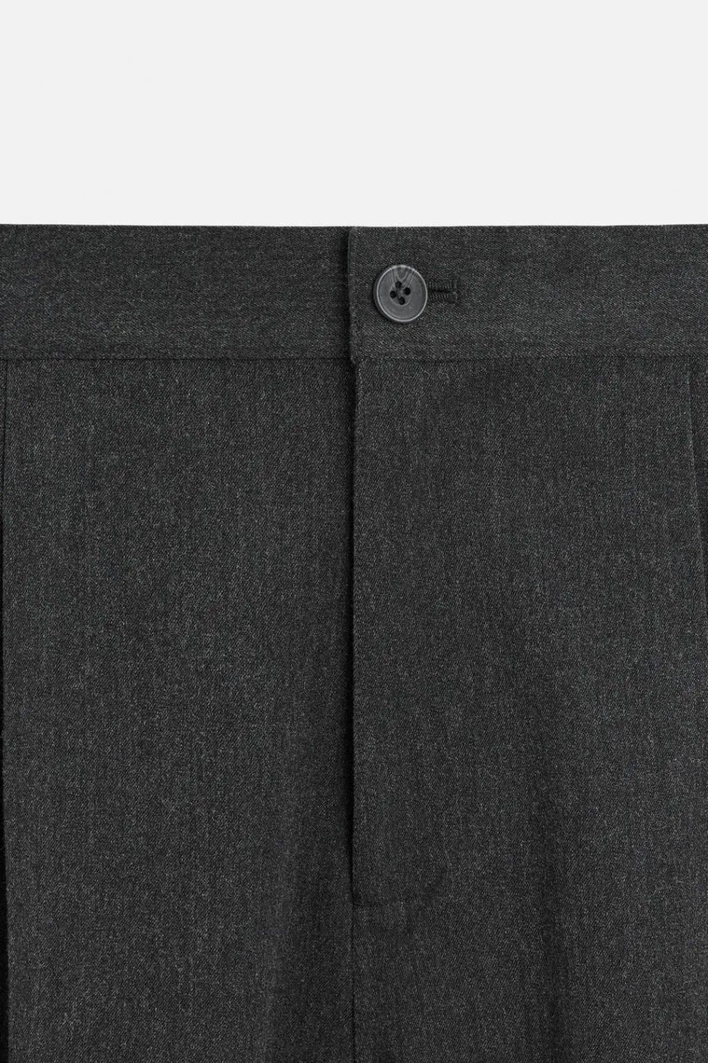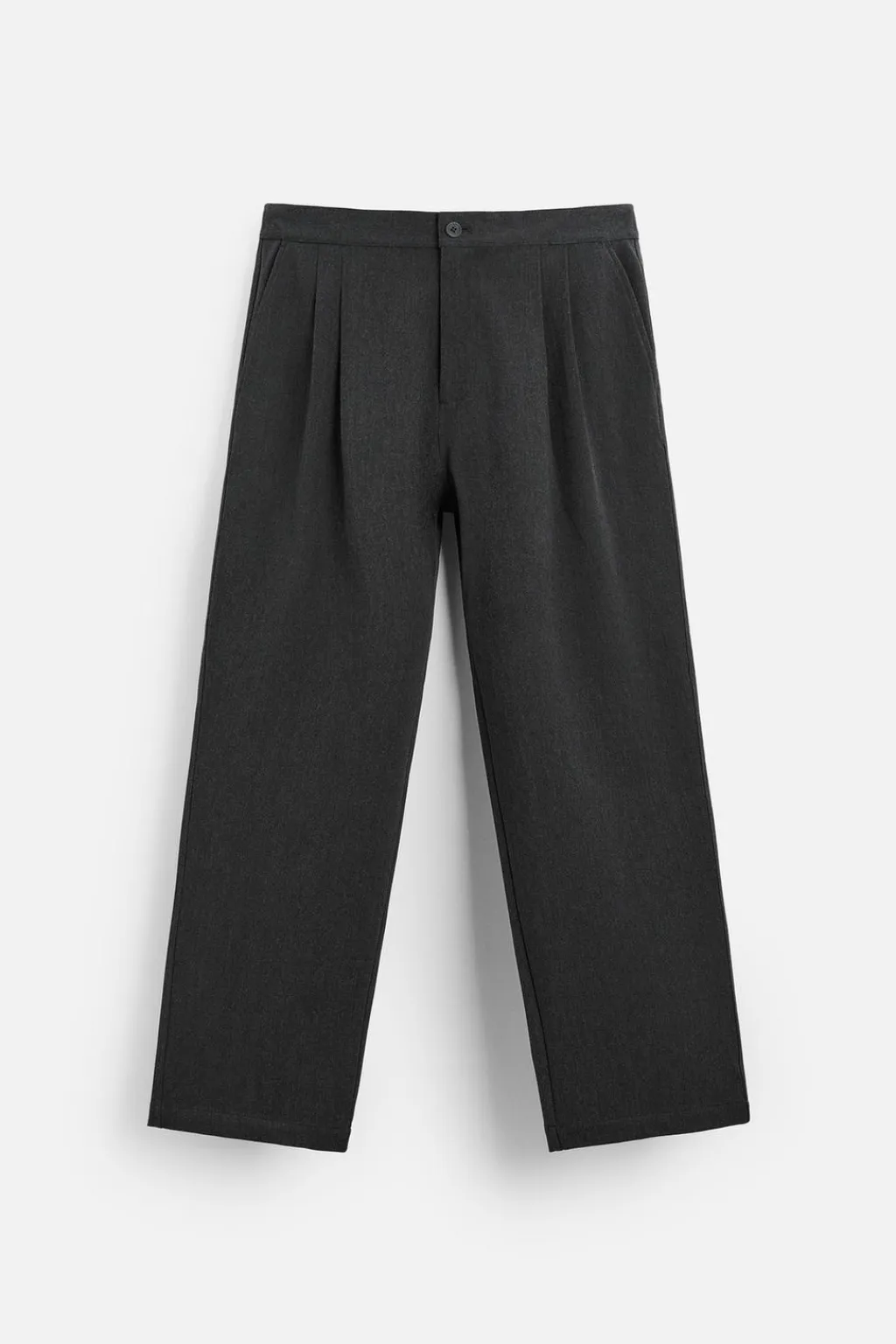 Pantalón regular fit confeccionado en tejido con viscosa. Cintura con detalle de pliegues frontales. Bolsillos delanteros y detalle de bolsillos traseros de vivo. Cierre frontal con cremallera y botón.