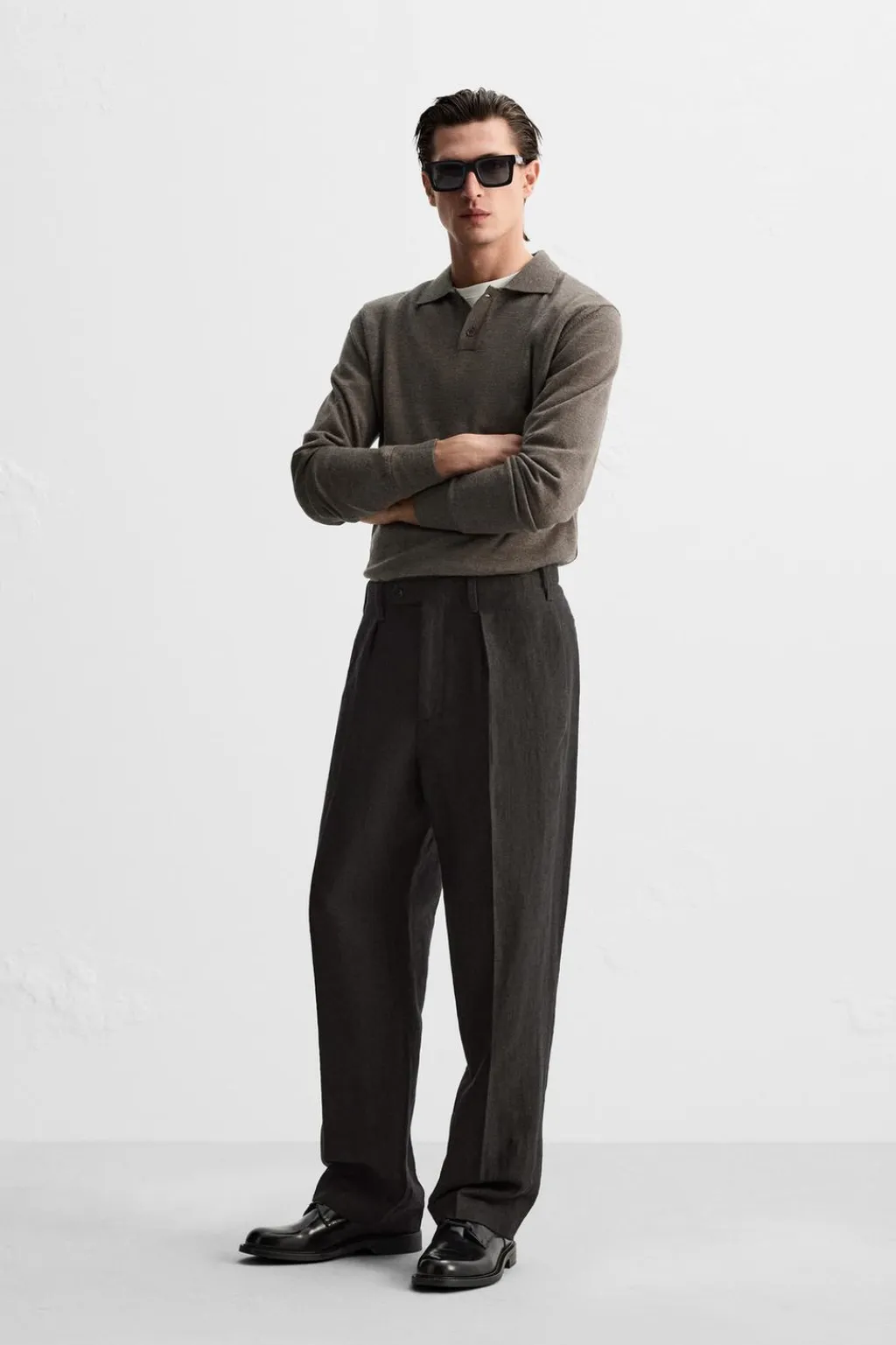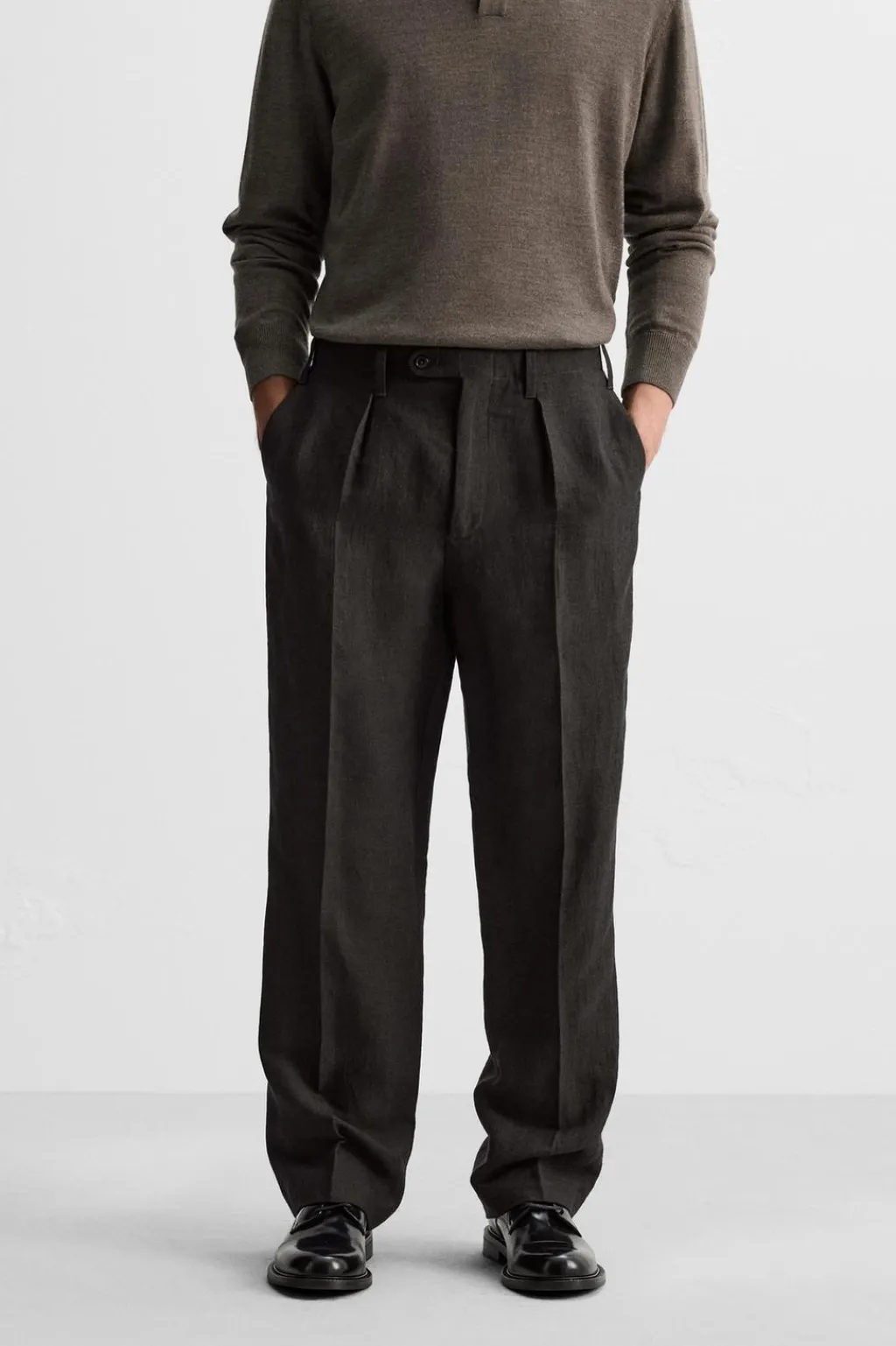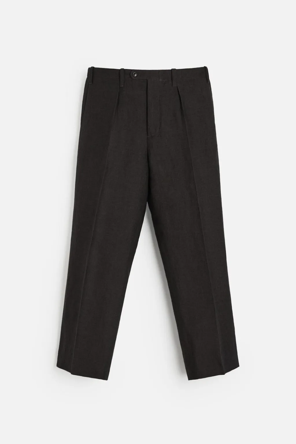 Pantalón regular fit confeccionado en tejido de origen italiano con mezcla de lino y lana.