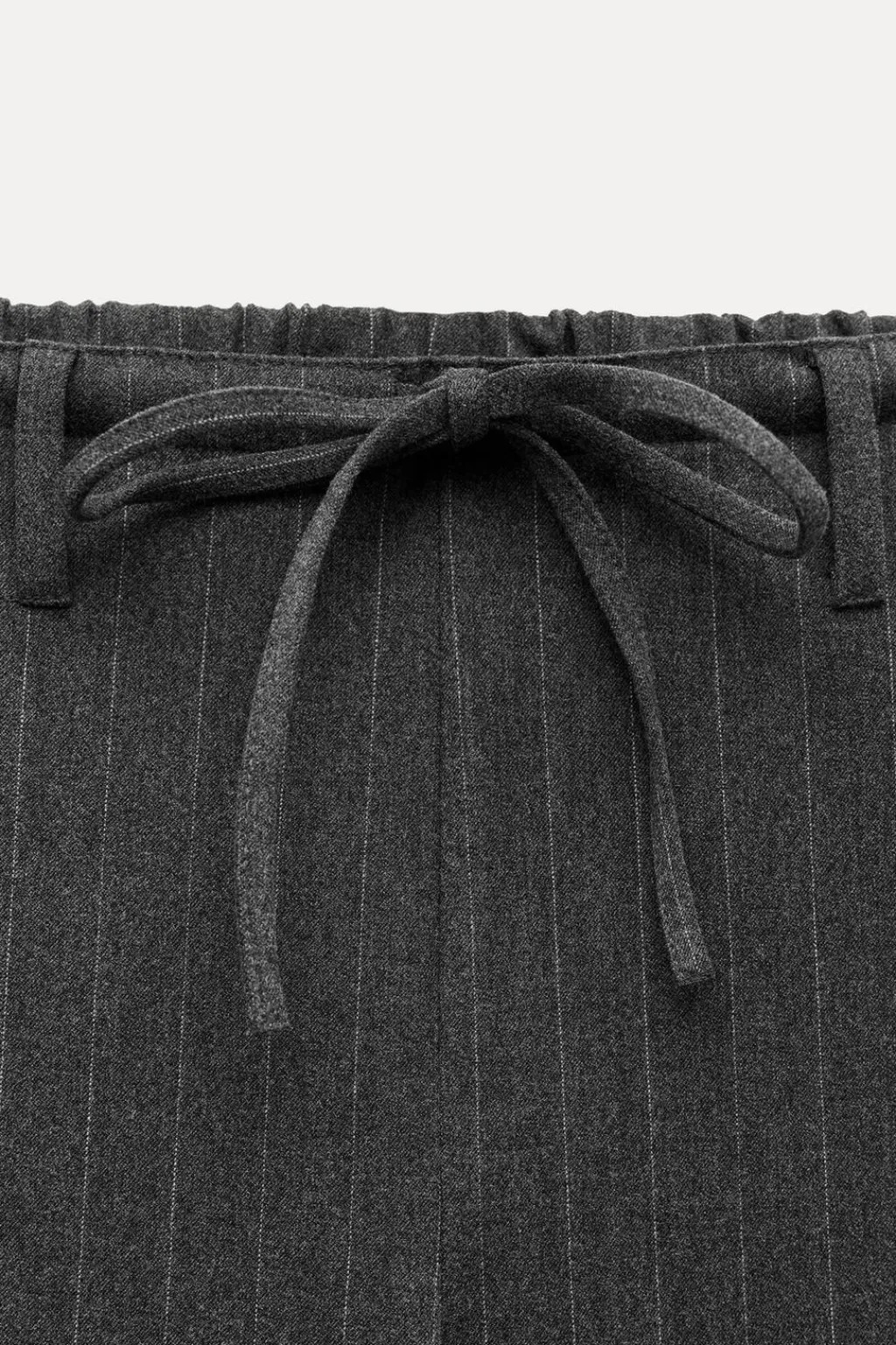 Pantalón de tiro medio con trabillas. Cintura elástica ajustable con cordón en mismo tejido. Bolsillos laterales y de plastrón es espalda. Pierna recta ancha.