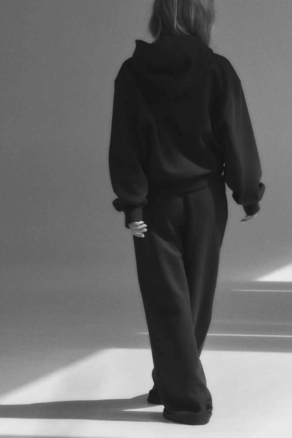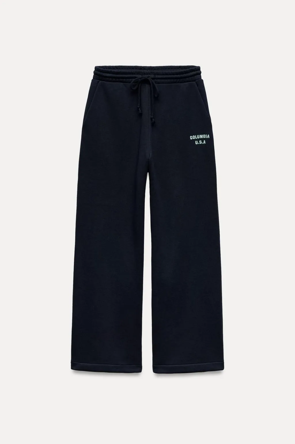 Pantalón de tiro medio con cintura elástica ajustable con cordones. Bolsillos laterales. Detalle de texto combinado a contraste.