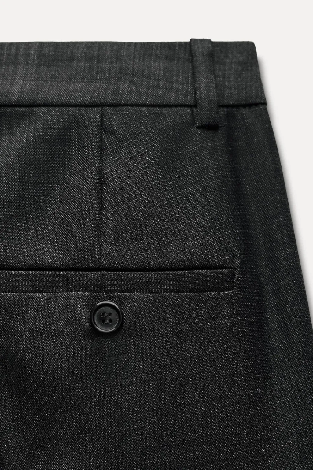 Pantalón confeccionado con lana. Tiro medio con trabillas. Bolsillos laterales y de vivo con botón en espalda.