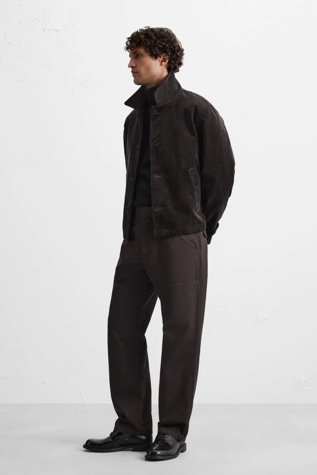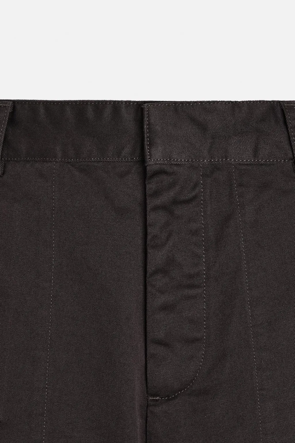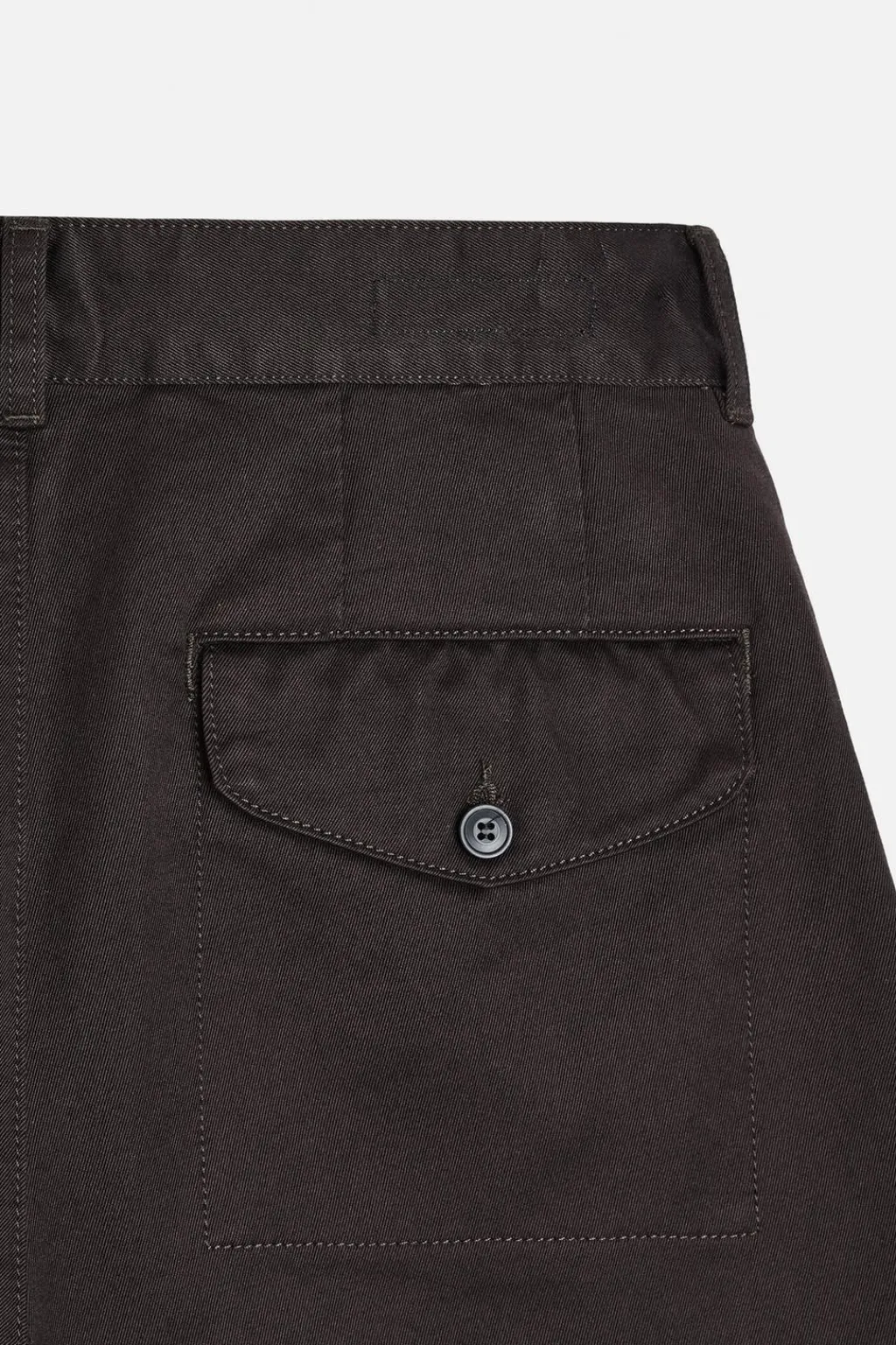 Pantalón relaxed fit confeccionado en tejido de algodón con estructura diagonal. Tiro alto. Bolsillos en delantero y detalle de bolsillos traseros de solapa con botón. Cierre frontal con cremallera y gancho metálico oculto.