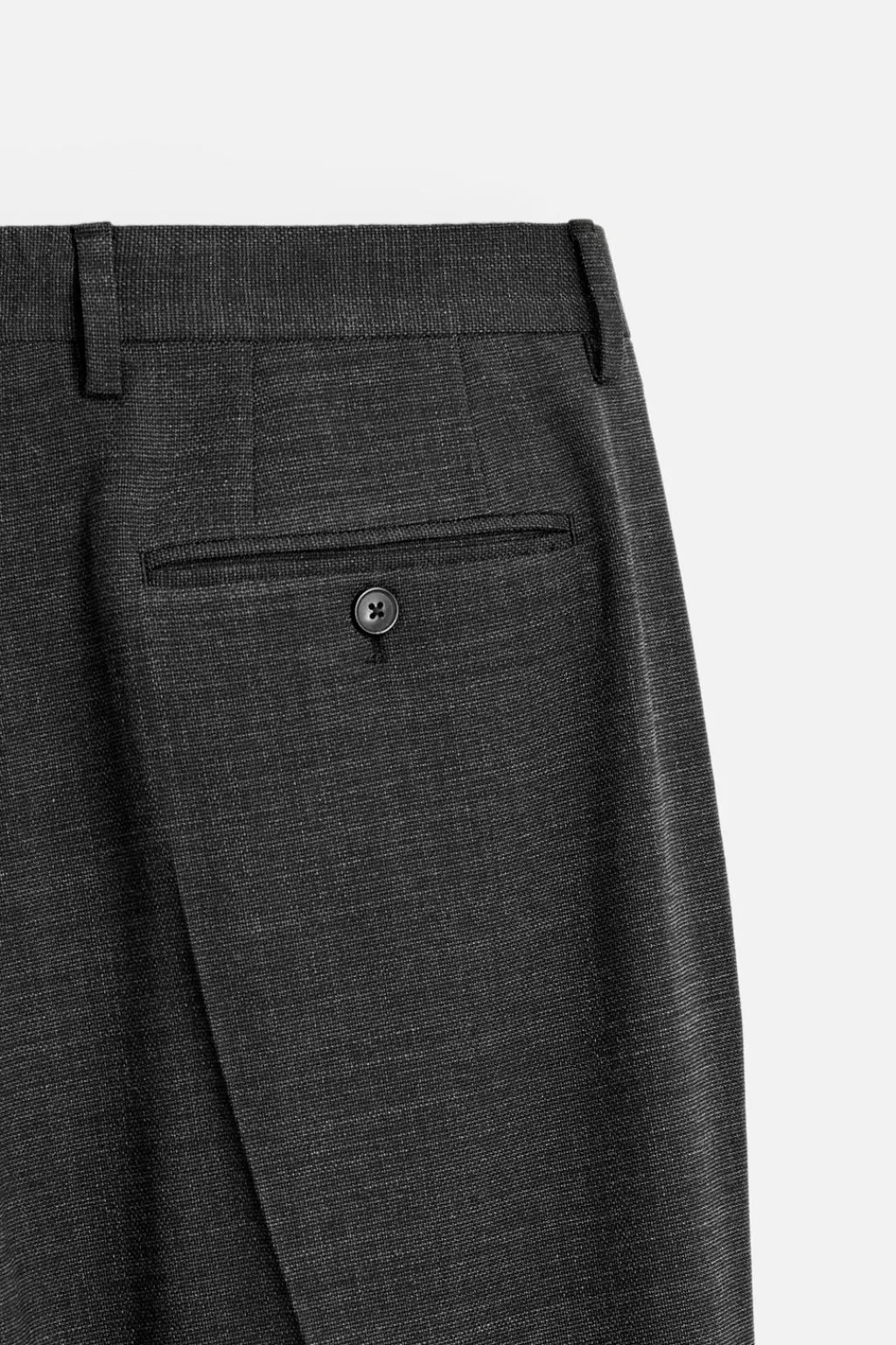Pantalón slim fit. Bolsillos frontales y detalle de bolsillos traseros de doble vivo con botón. Cierre frontal con cremallera y botón.