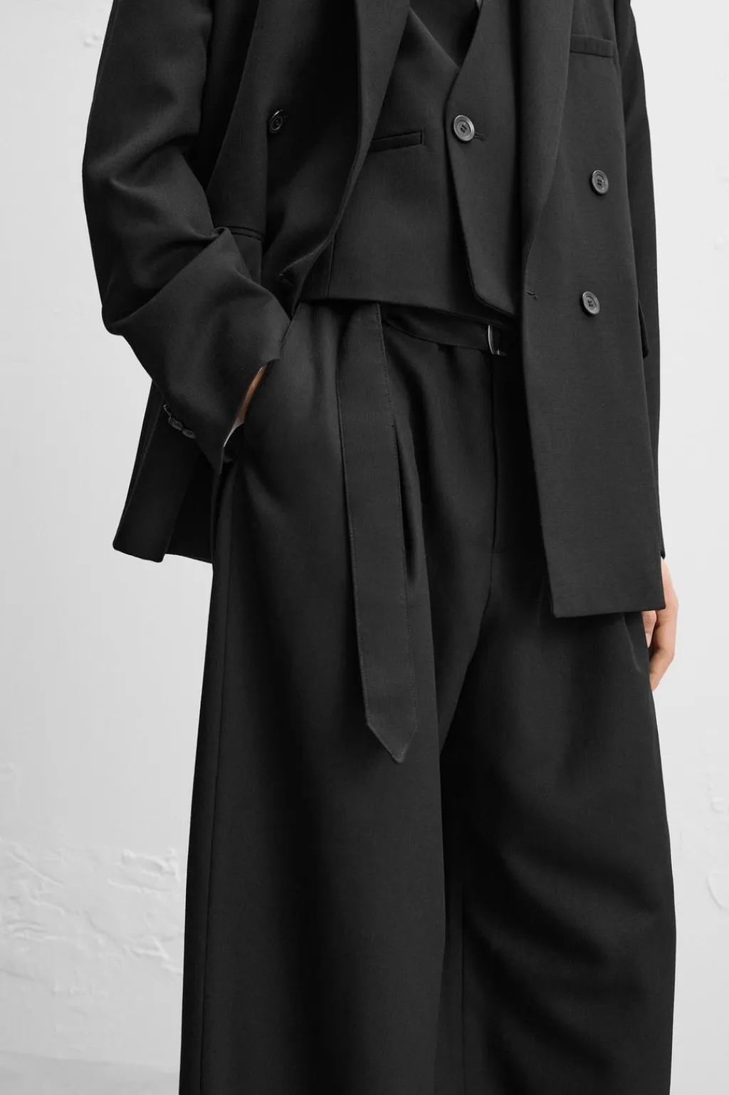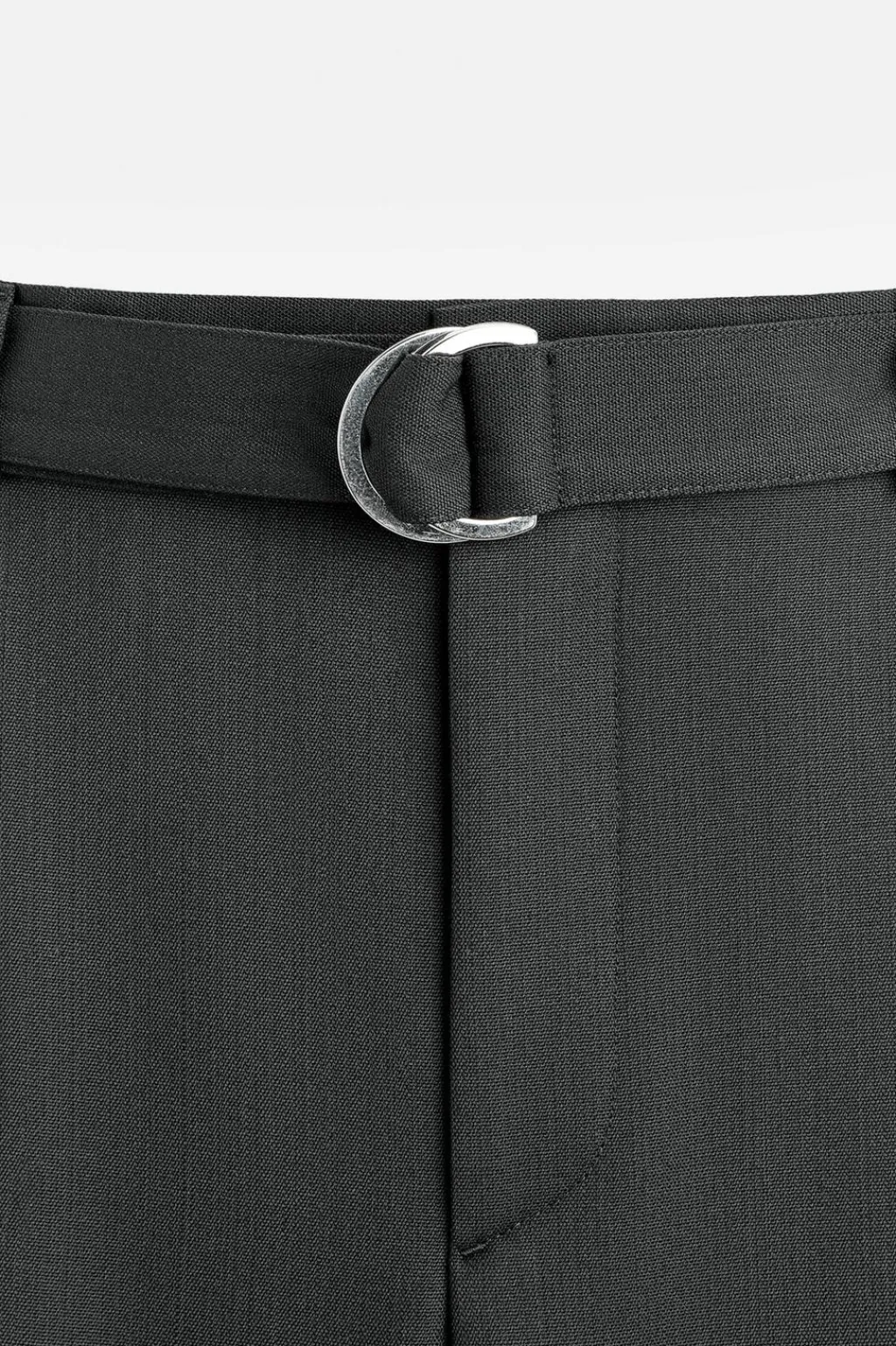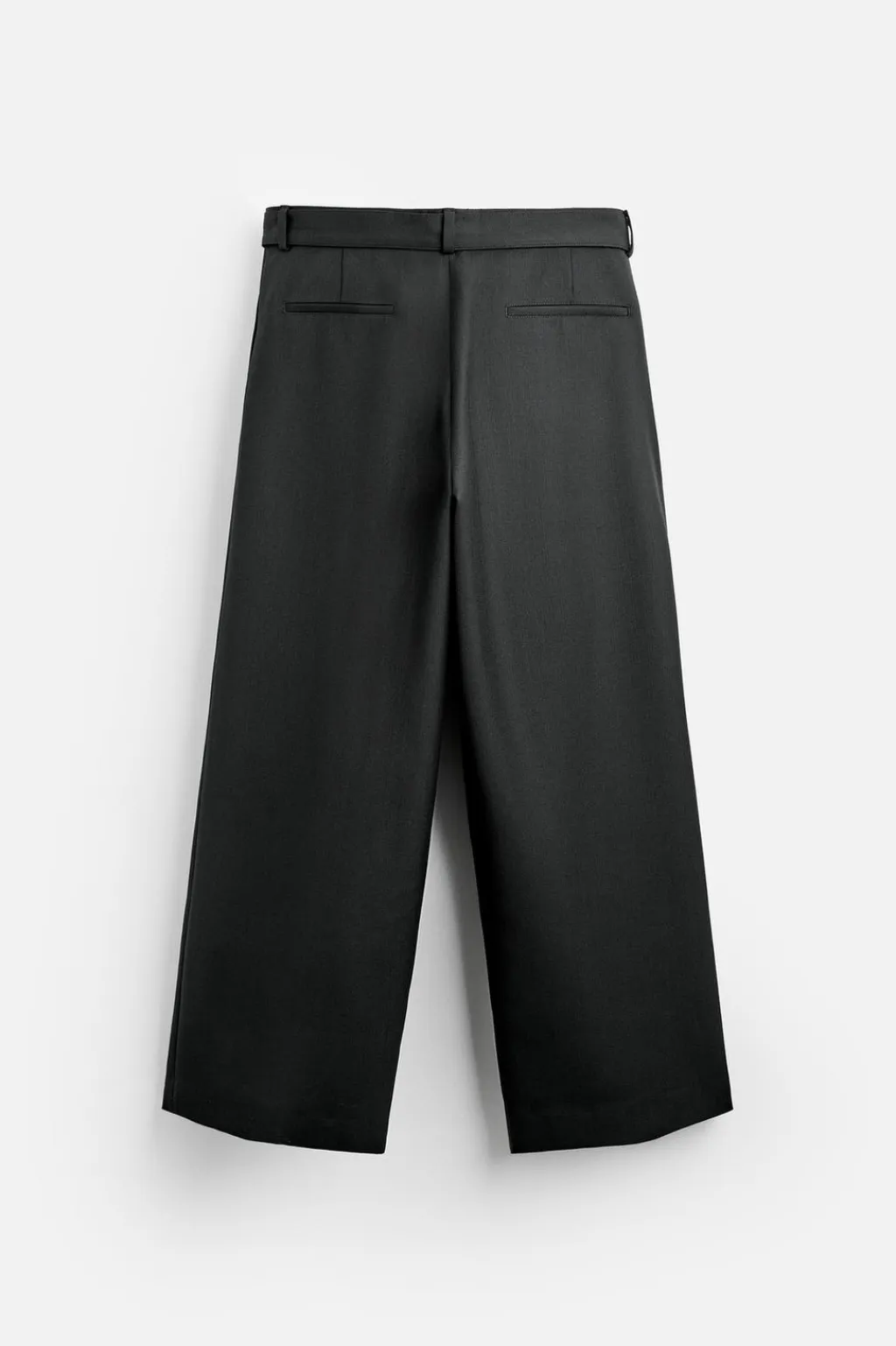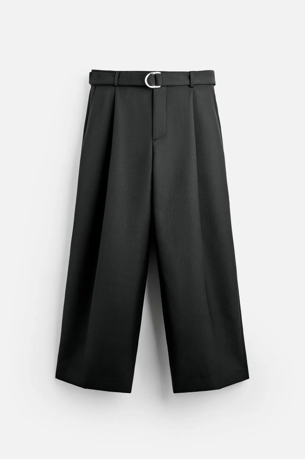 Pantalón relaxed fit confeccionado en tejido con lana. Cintura ajustable con cinturón del mismo tejido y detalle de pliegues frontales. Bolsillos delanteros y detalle de bolsillos traseros de vivo. Cierre frontal con cremallera y botón.