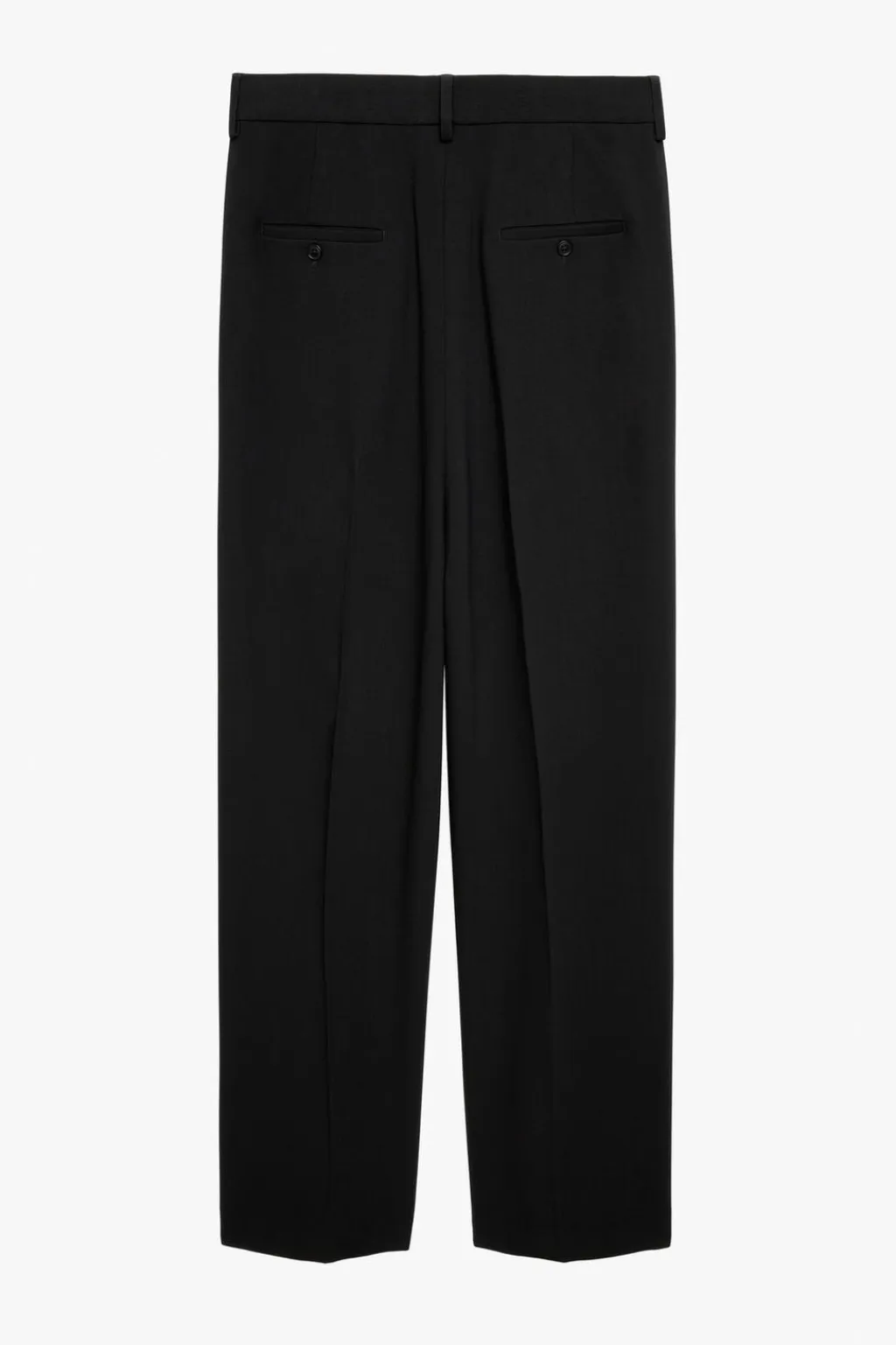 Pantalón carrot fit confeccionado en tejido fluido de lana y viscosa. Bolsillos frontales y detalle de bolsillos traseros de vivo. Cierre frontal con cremallera y gancho metálico oculto.