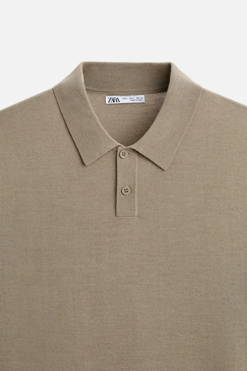 Polo regular fit tejido en hilatura ligera de lana. Cuello solapa con cierre frontal de botonadura. Manga corta. Acabados en rib.