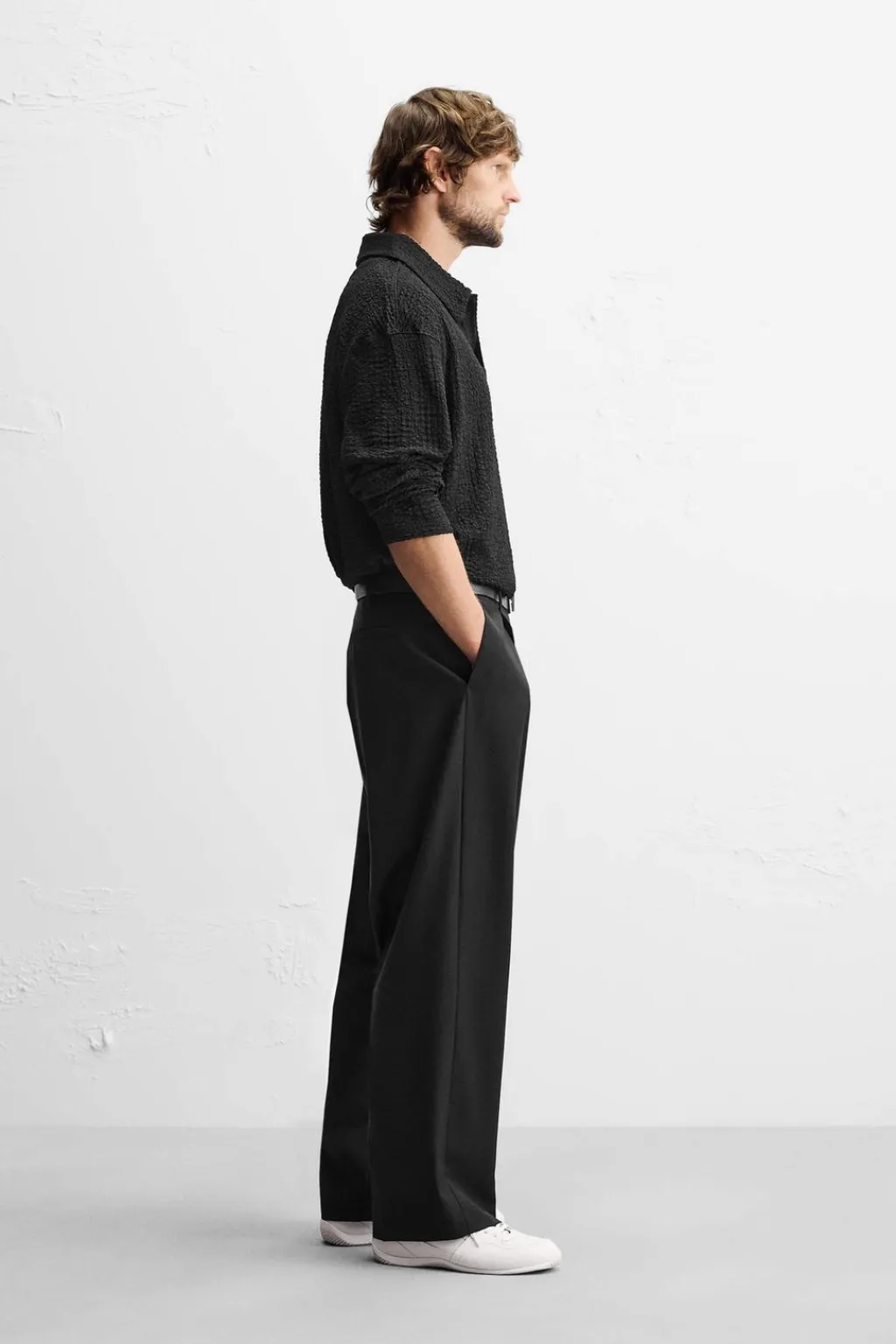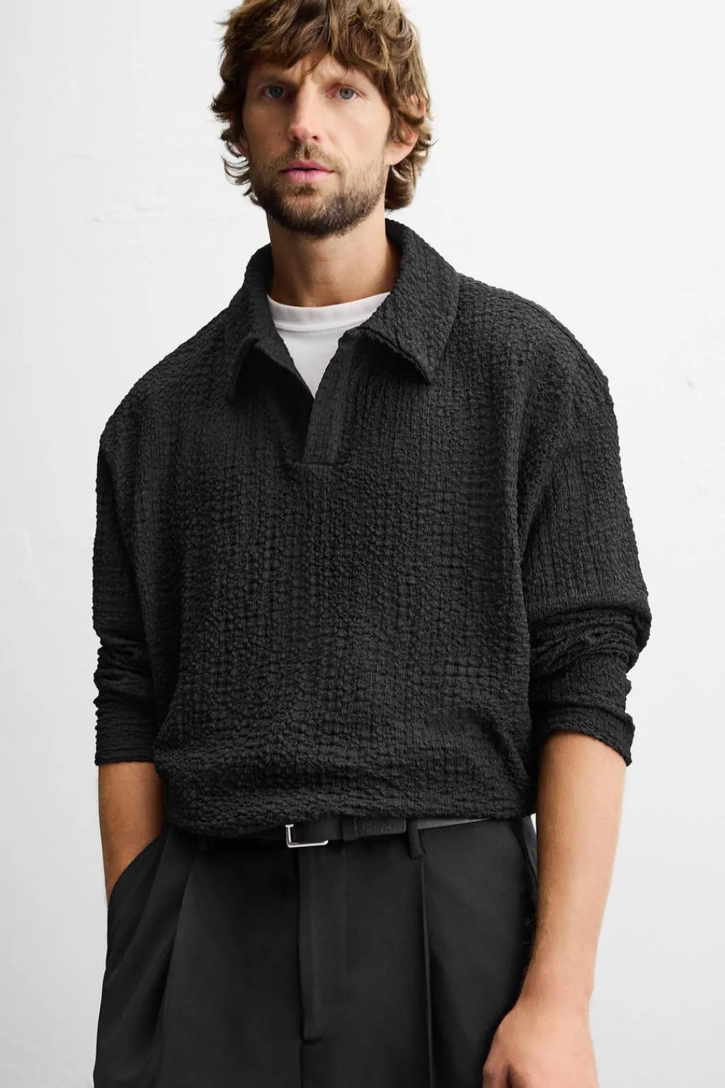 Polo relaxed fit. Cuello solapa con abertura frontal. Manga larga.