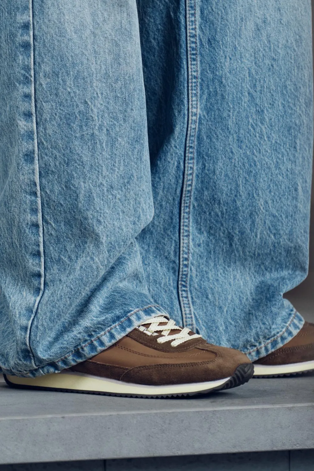 Zapatillas deportivas en combinación de materiales. Suela en contraste. Cierre mediante cordones.