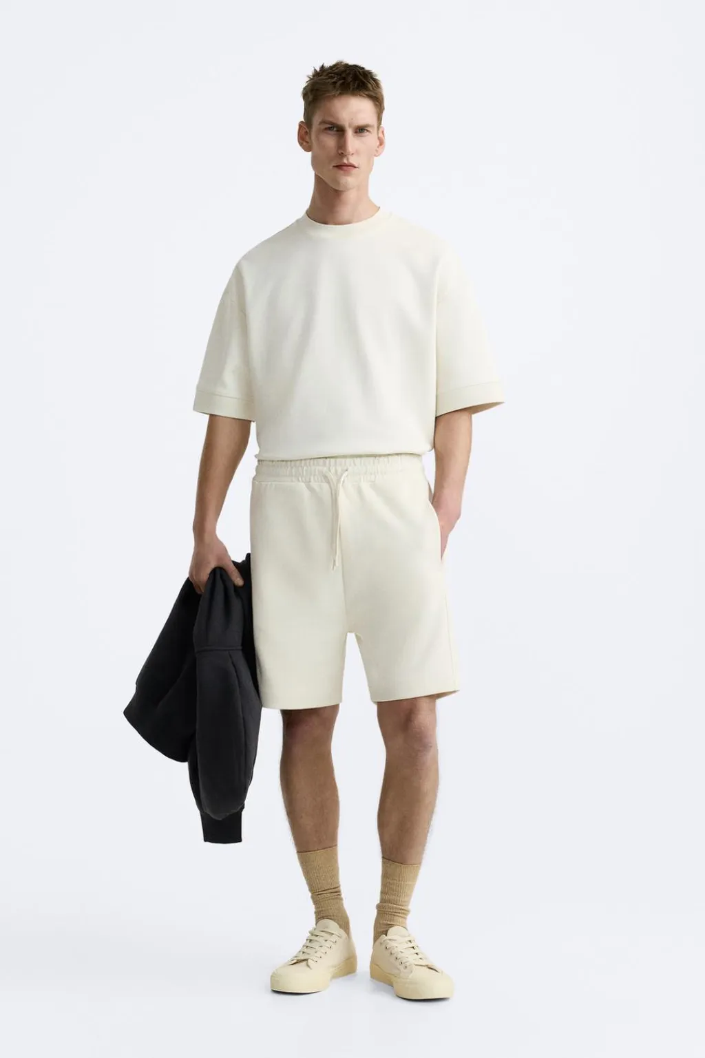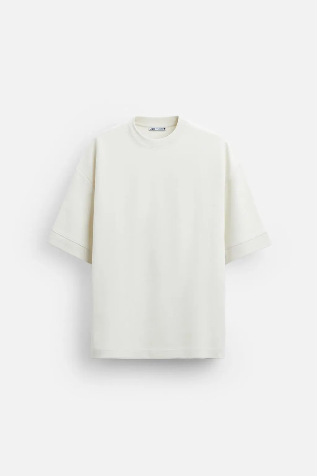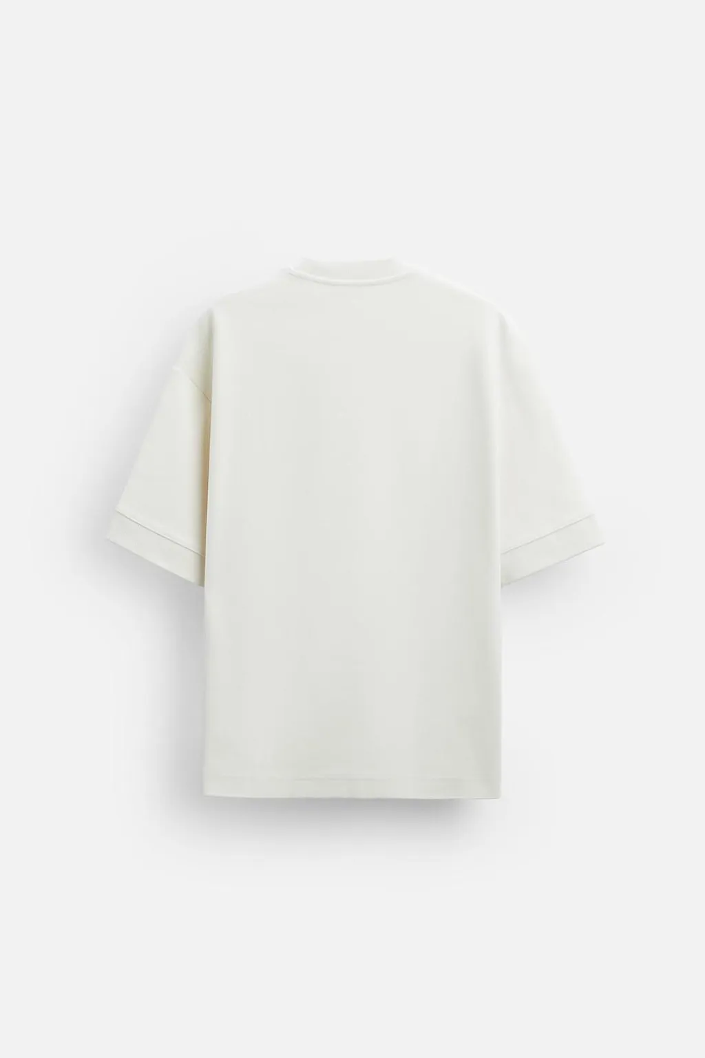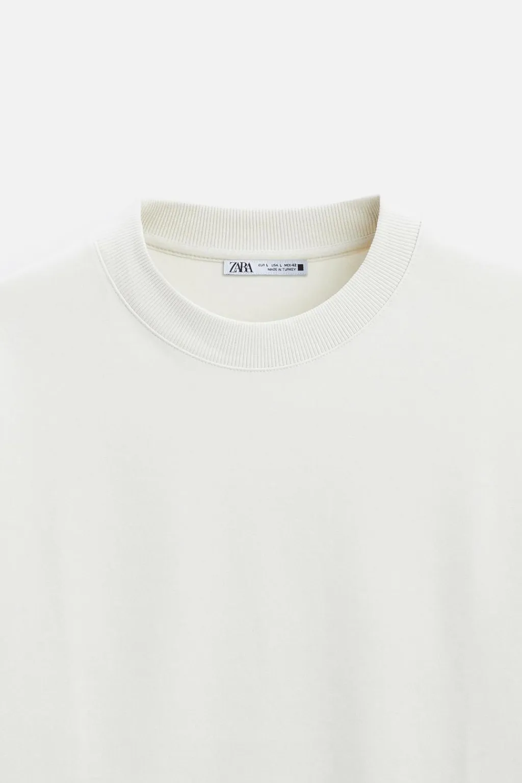 Sudadera amplia con cuello acabado en rib ancho y manga corta. Bajo con aberturas laterales.