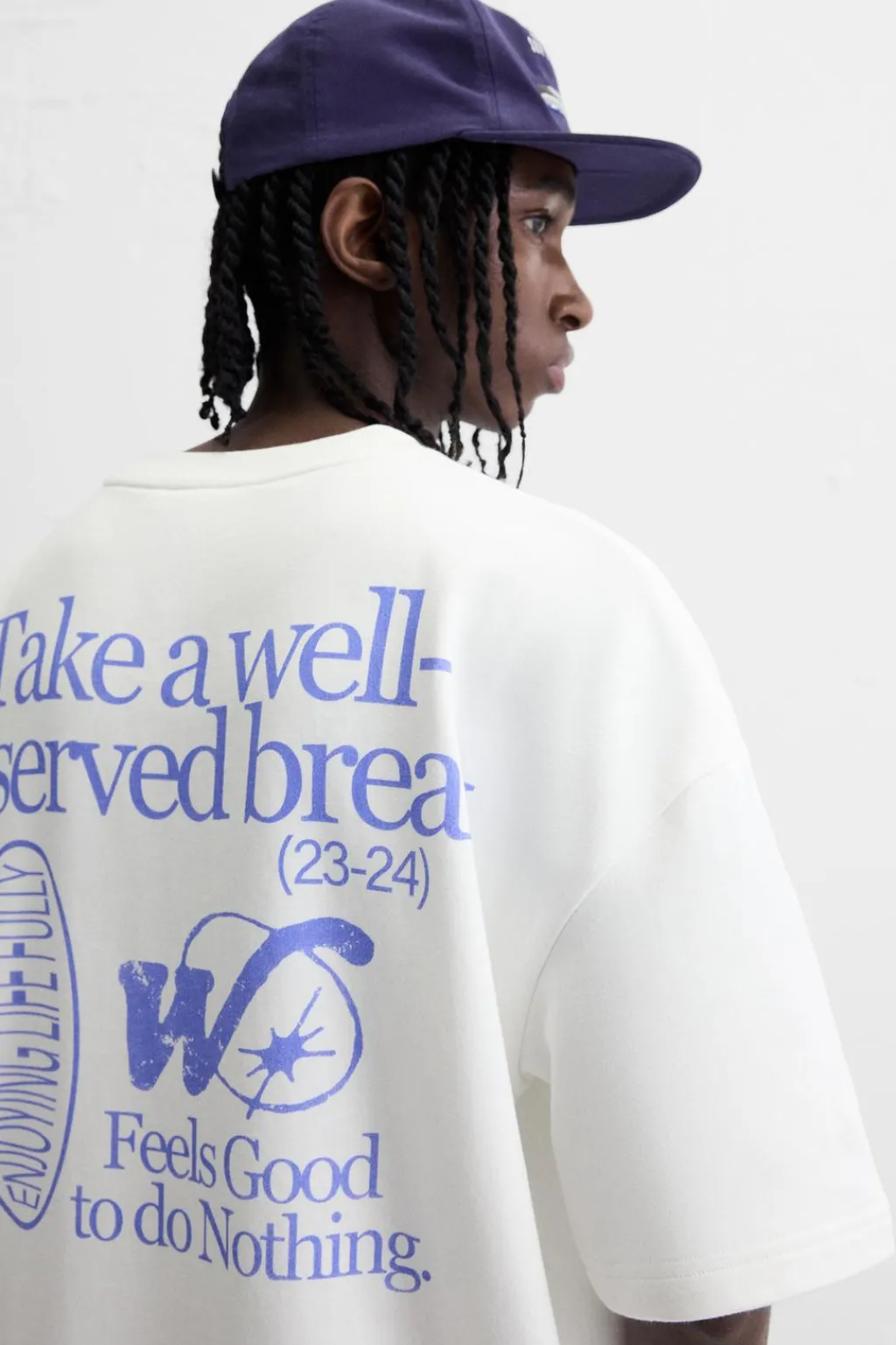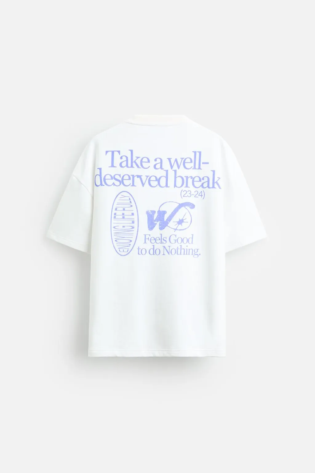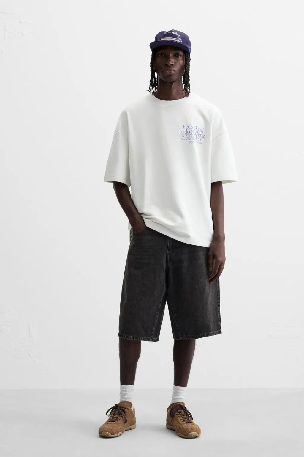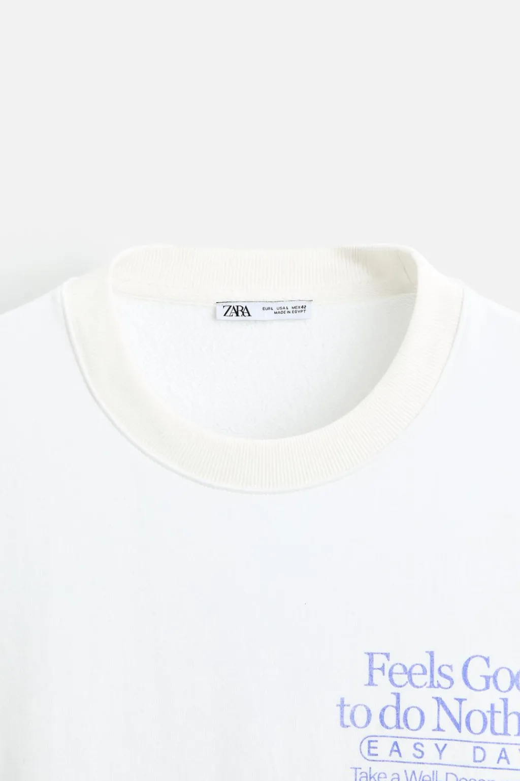 Sudadera relaxed fit. Cuello redondo y manga corta. Estampaciones combinadas a contraste en delantero y espalda.