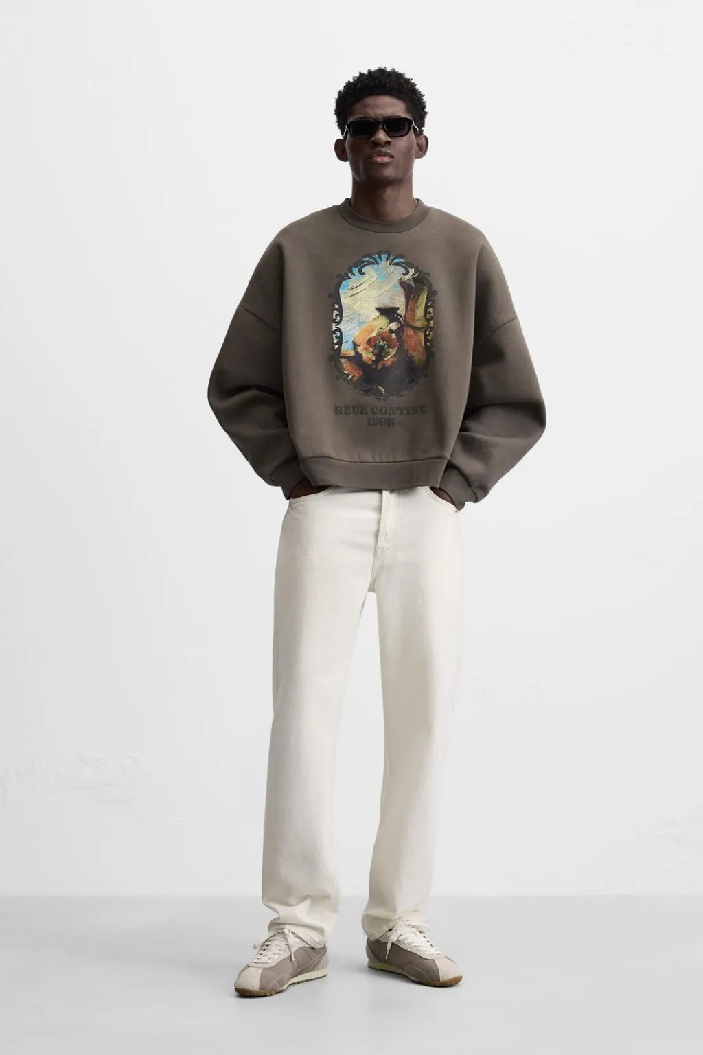 Sudadera regular fit. Cuello redondo y manga larga. Detalle de estampación y bordado combinado a contraste en delantero. Acabados en rib.