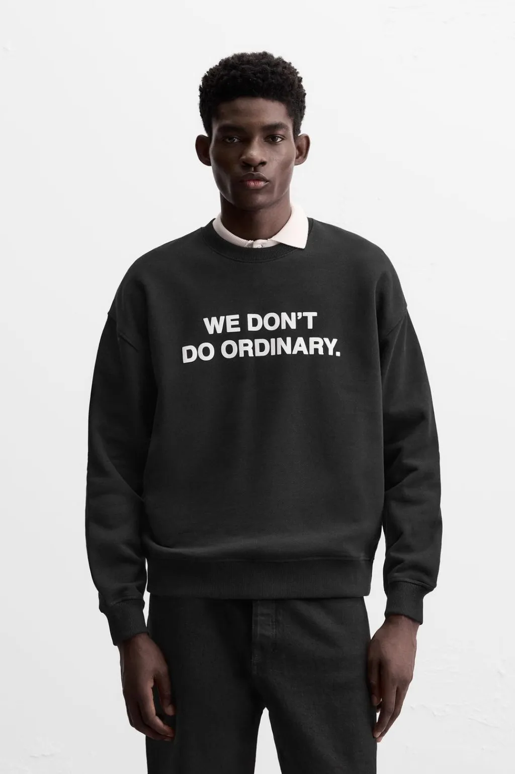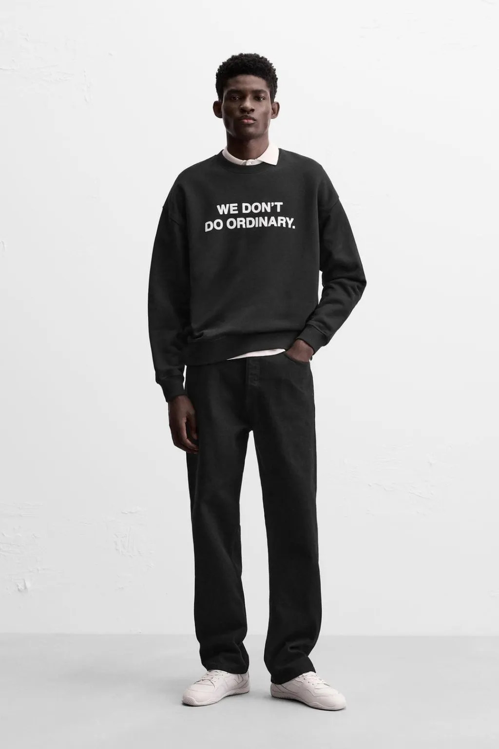 Sudadera regular fit. Cuello redondo y manga larga. Texto estampado combinado a contraste en delantero. Acabados en rib.