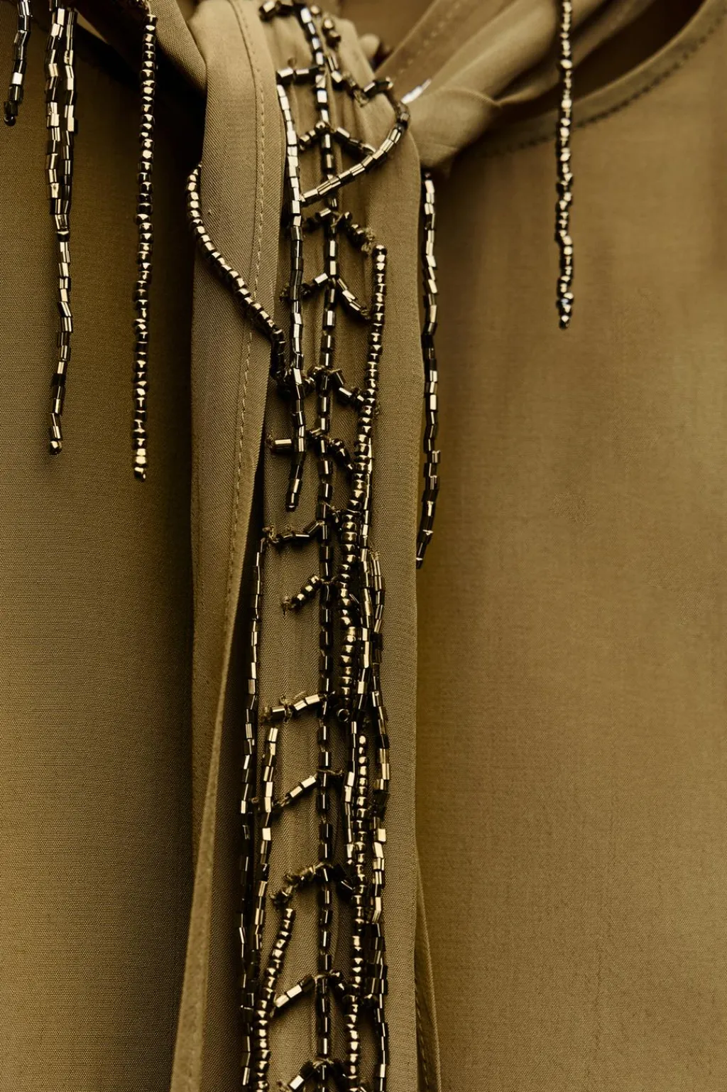 Top de cuello redondo y manga larga. Detalle de pañuelo bordado con aplicación de abalorios. Bajo recto. Cierre en espalda con cremallera oculta en costura.