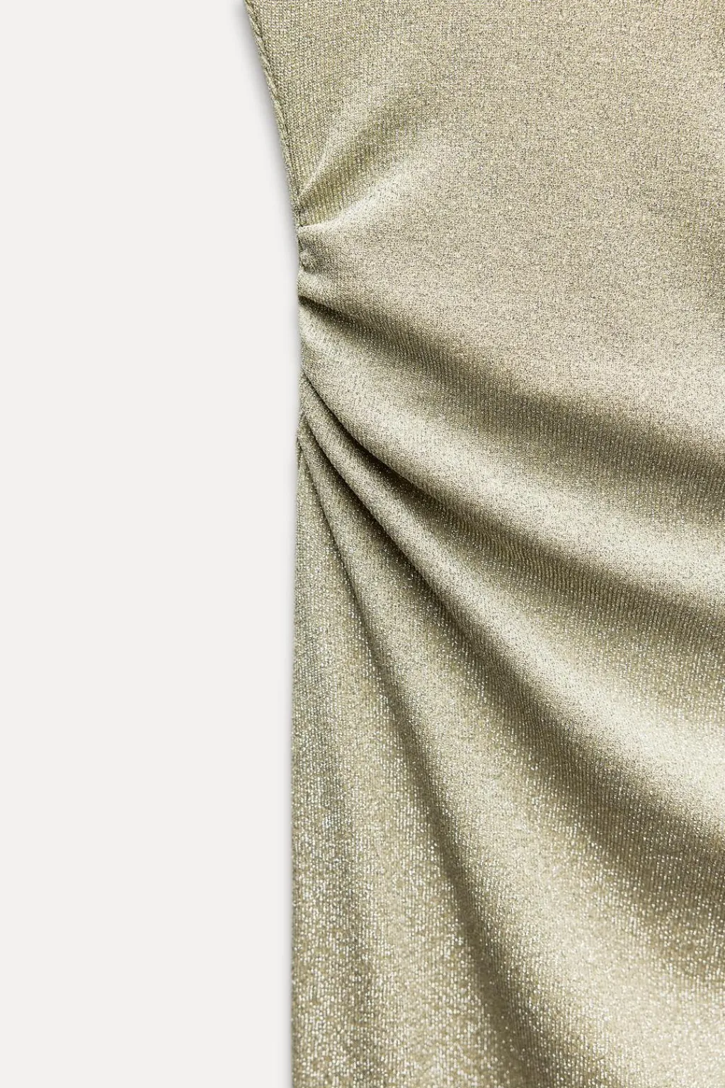 Vestido confeccionado en tejido tipo punto con hilo metalizado. Cuello halter cruzado. Tejido drapeado en lateral. Espalda descubierta. Forro interior combinado. Cierre en espalda con cremallera oculta en costura.