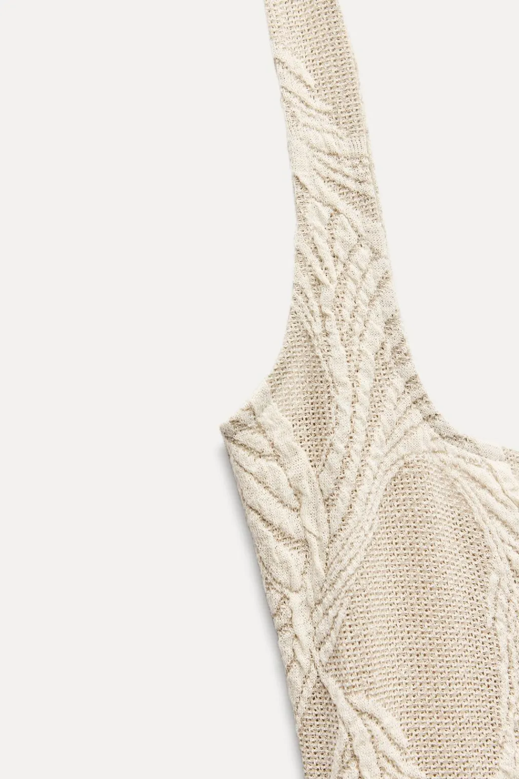 Vestido midi confeccionado en hilatura con algodón. Escote cuadrado y tirantes anchos. Detalle de jacquard a contraste.