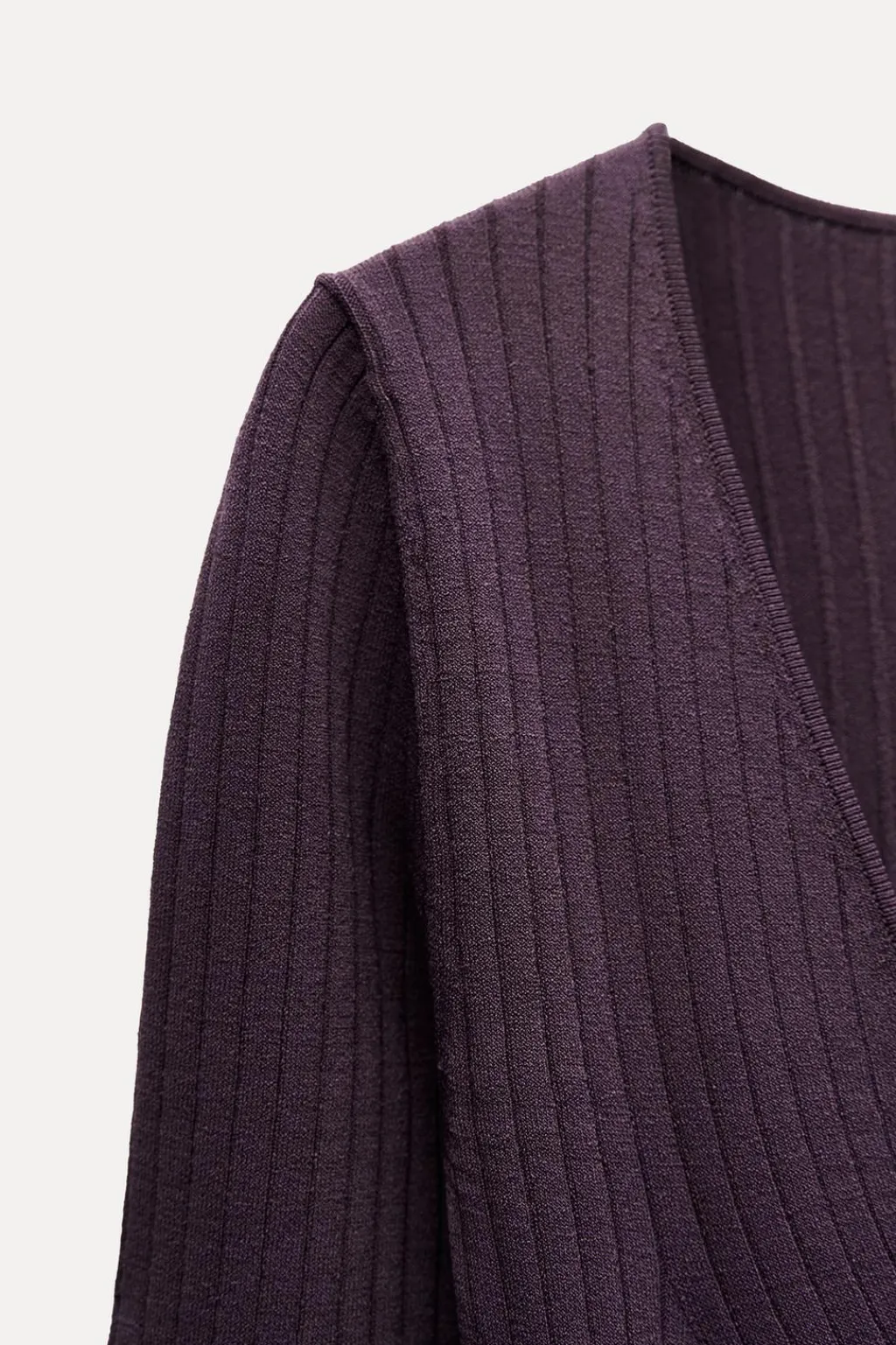 Vestido entallado de escote pico y manga larga. Detalle de ribs combinados.