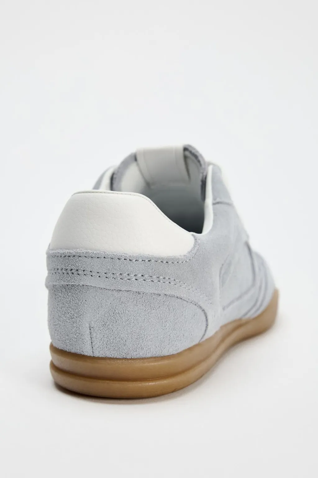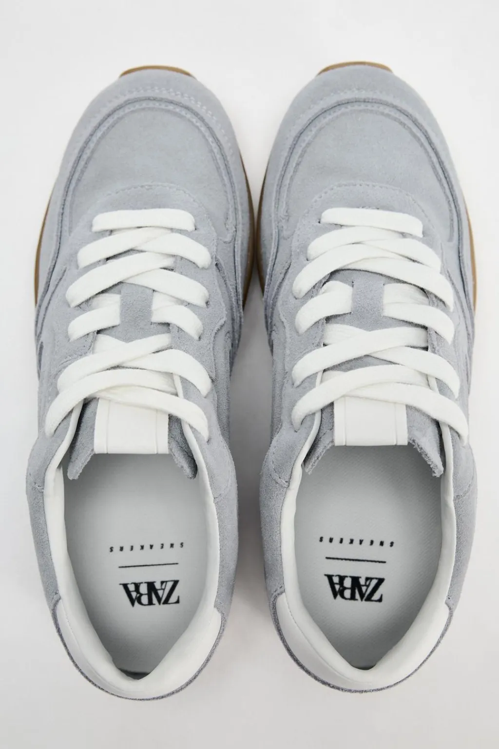 Zapatillas deportivas en serraje estilo running. Suela en contraste. Cierre mediante cordones.