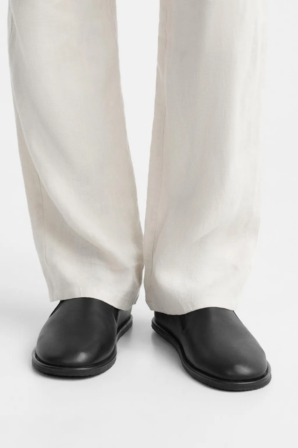 Zapato casual sin cordones. Parte superior fabricada en piel. Bandas elásticas laterales para facilitar el calce. Suela plana a tono con detalle de ribete en piel.