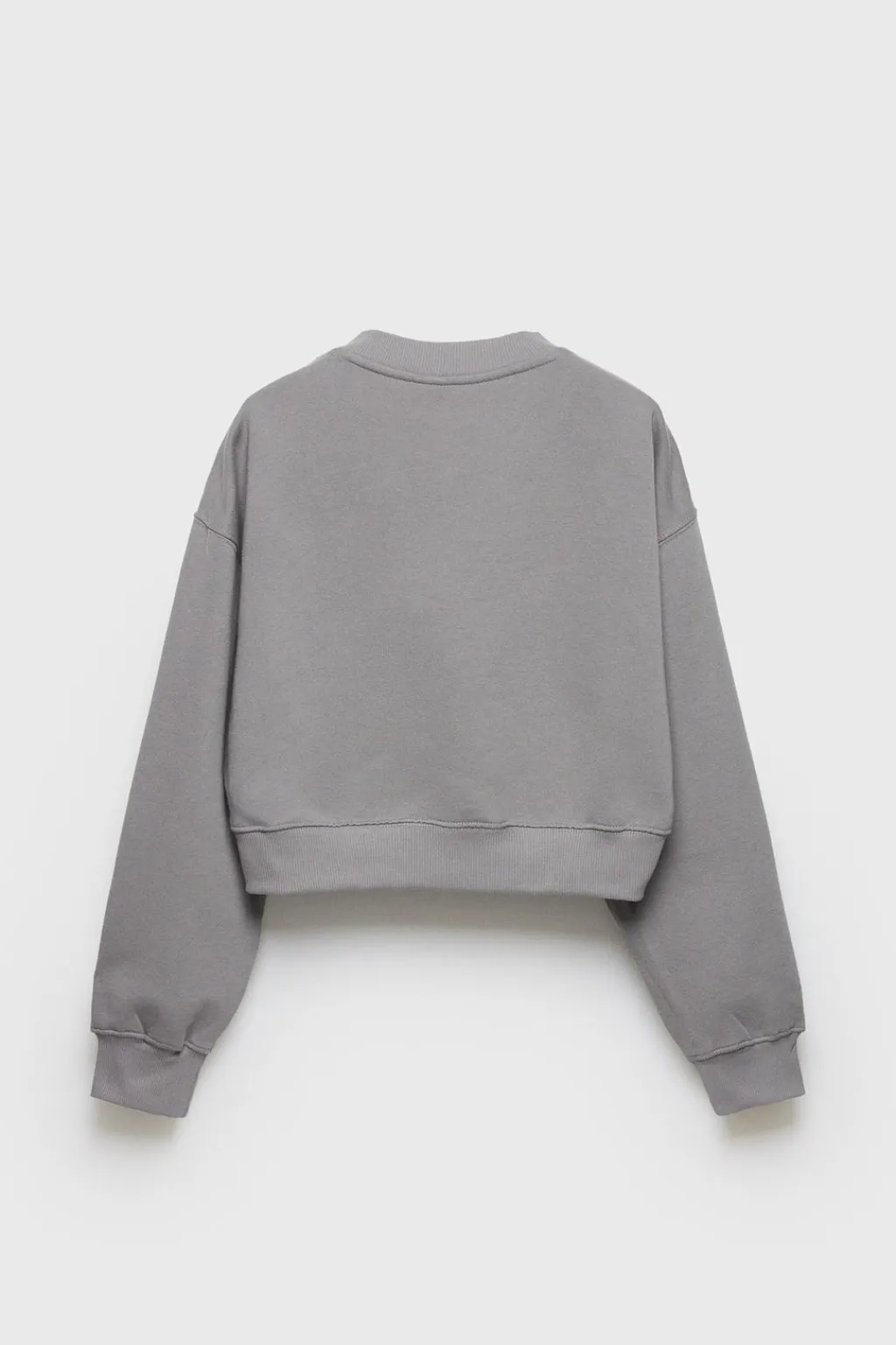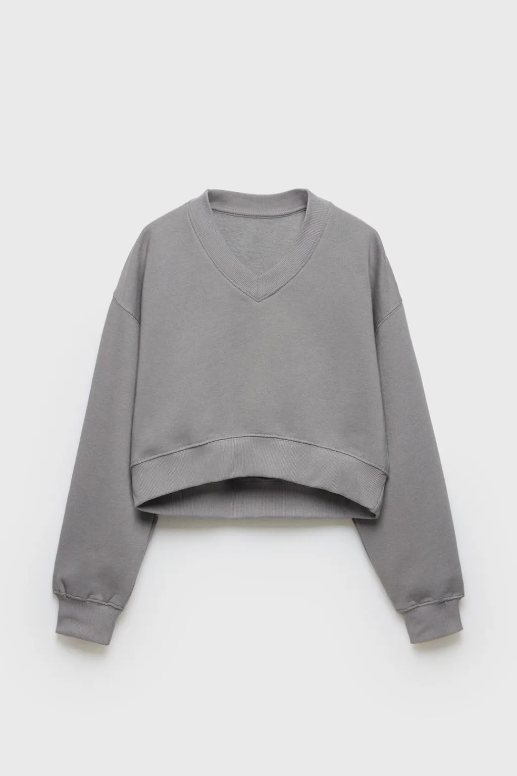 Sudadera tipo crop con cuello pico y manga larga. Con acabados en rib. Calidad interior cálida y suave.