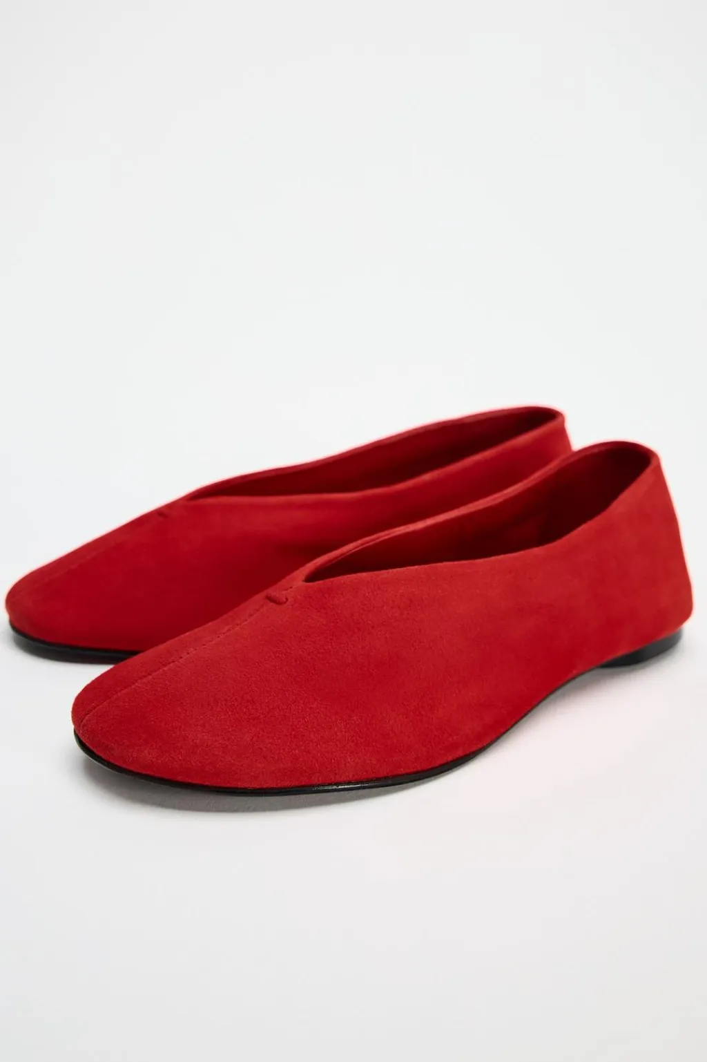 Zapato plano tipo bailarina en ante. Escote redondo.