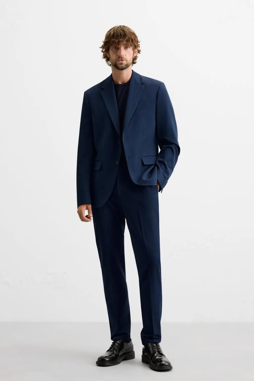 Blazer slim fit confeccionado en tejido con viscosa. Cuello con solapas de muesca. Manga larga acabada en puño con detalle de botones. Bolsillo de vivo en pecho y de solapa en cadera. Detalle bolsillo interior. Bajo con aberturas en espalda. Cierre frontal con botones.
