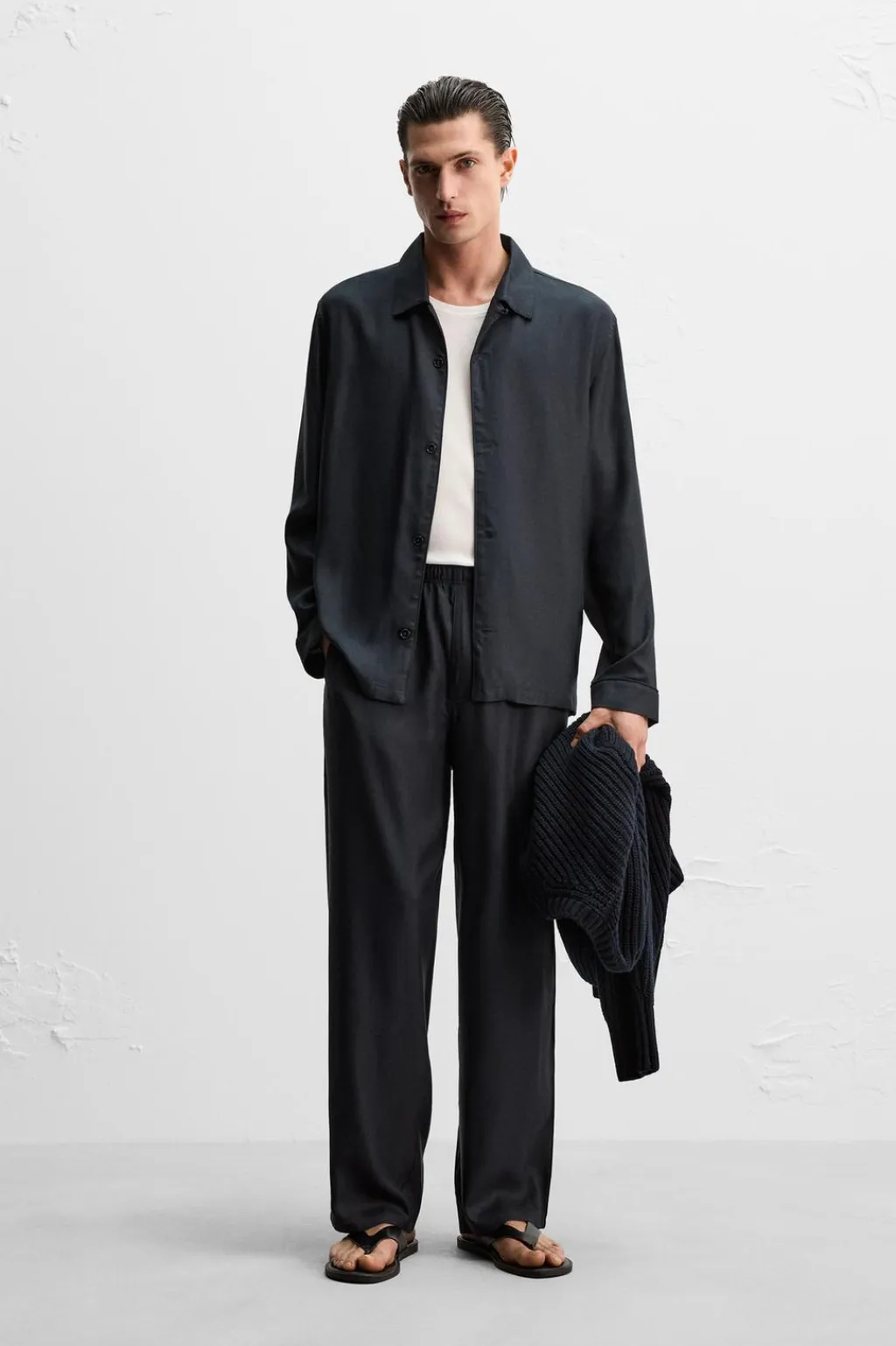 Camisa relaxed fit confeccionada en tejido ligero de seda con estructura twill. Cuello solapa y manga larga. Acabados con vivo del mismo tejido. Cierre frontal de botonadura.