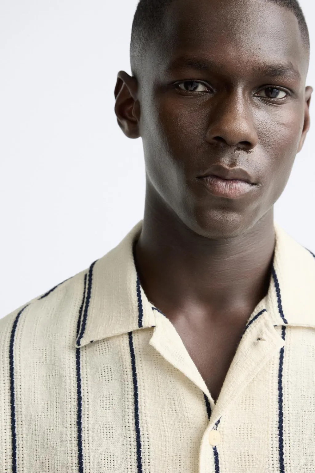 Camisa relaxed fit confeccionada en tejido con algodón. Cuello bowling y manga corta. Cierre frontal de botonadura.