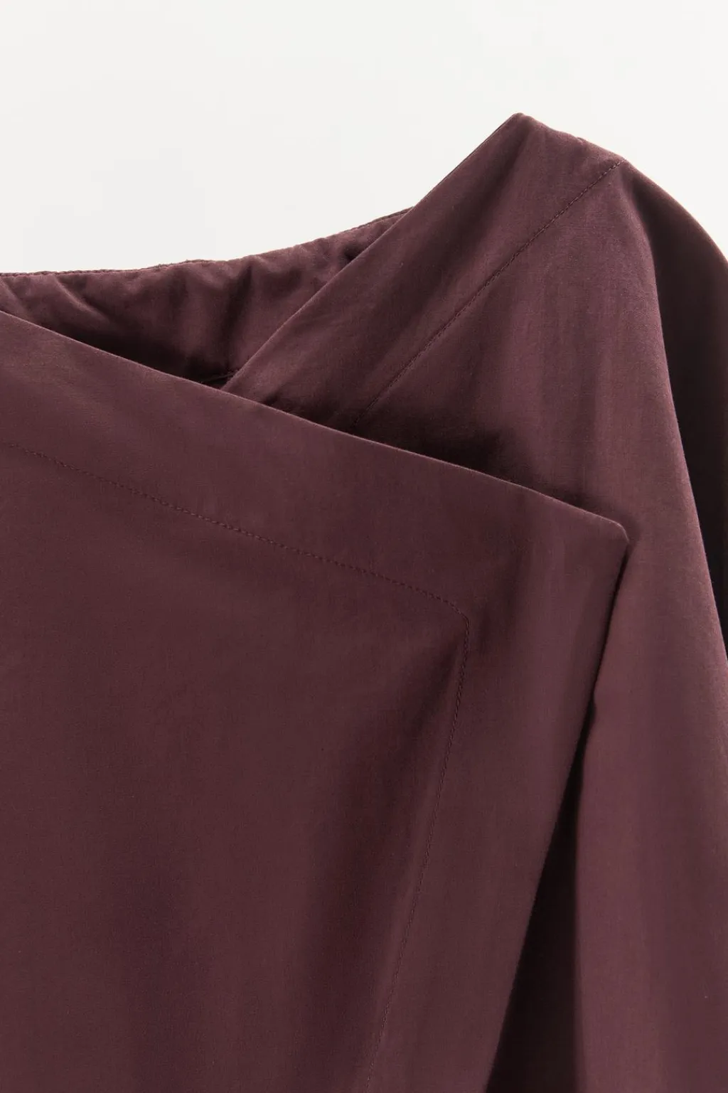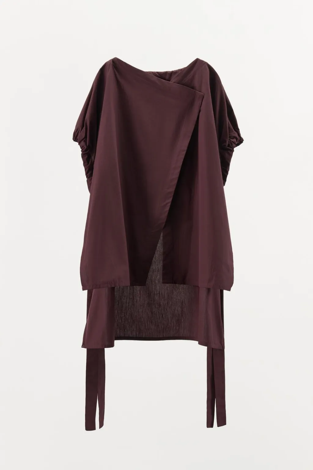 Camisa confeccionada en popelín. Manga corta ajustable con lazadas. Bajo con aberturas laterales. Tejido cruzado en delantero con abertura.