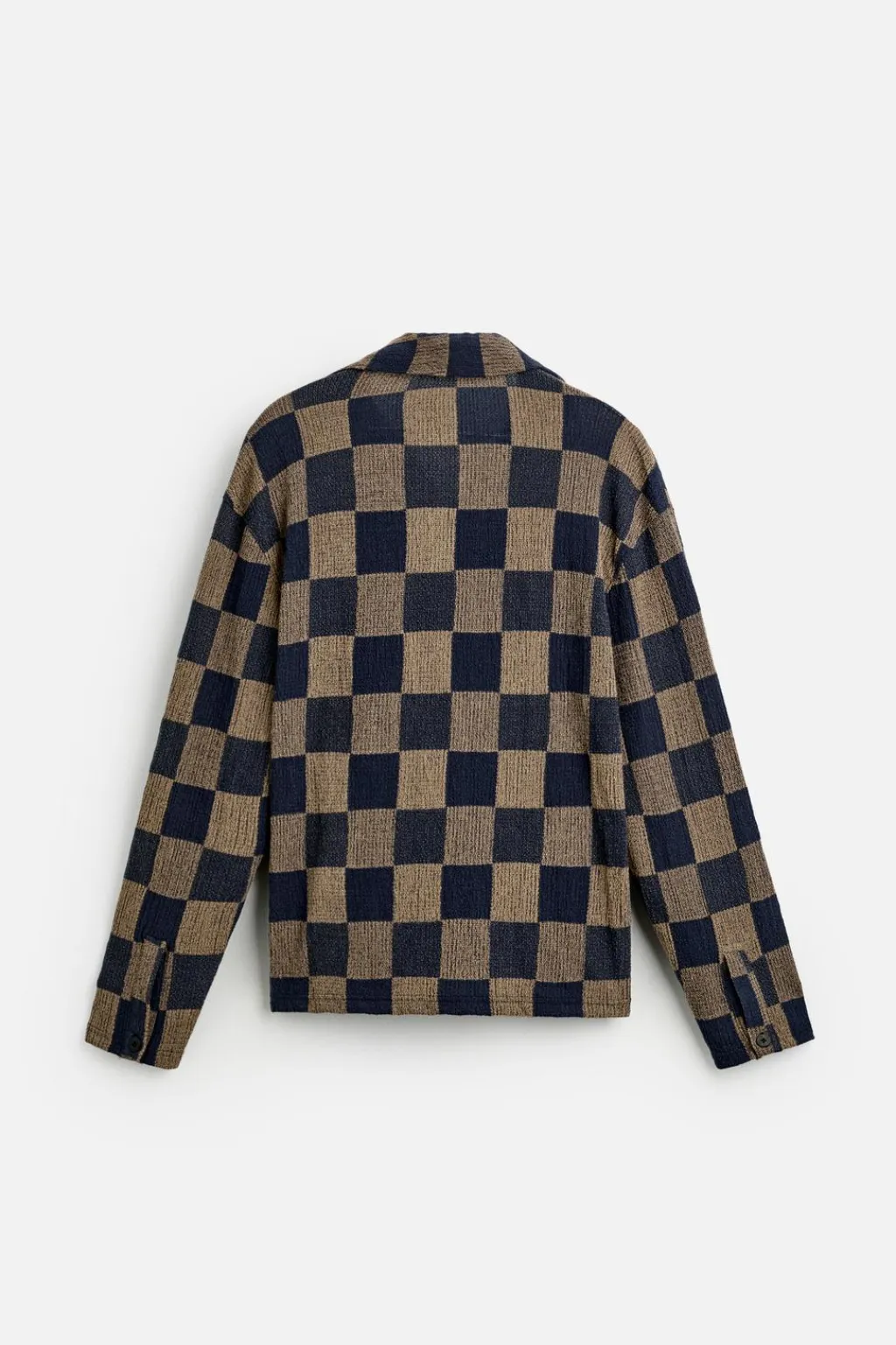 Camisa de punto tejido en hilatura con textura. Cuello bowling y manga larga. Bolsillos de plastrón en cadera. Cierre frontal de botonadura.