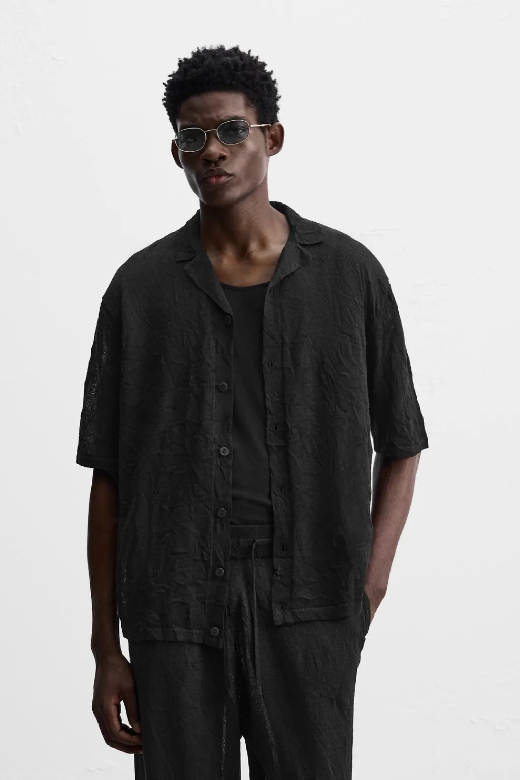 Camisa regular fit. Cuello bowling y manga corta. Cierre frontal de botonadura.