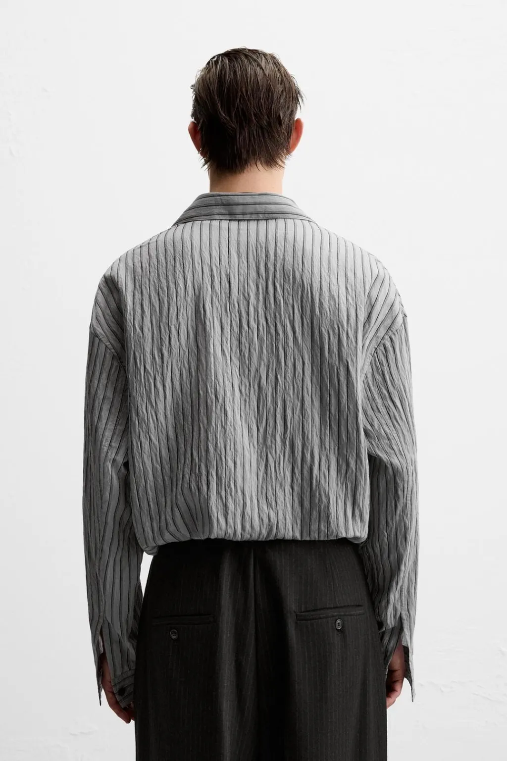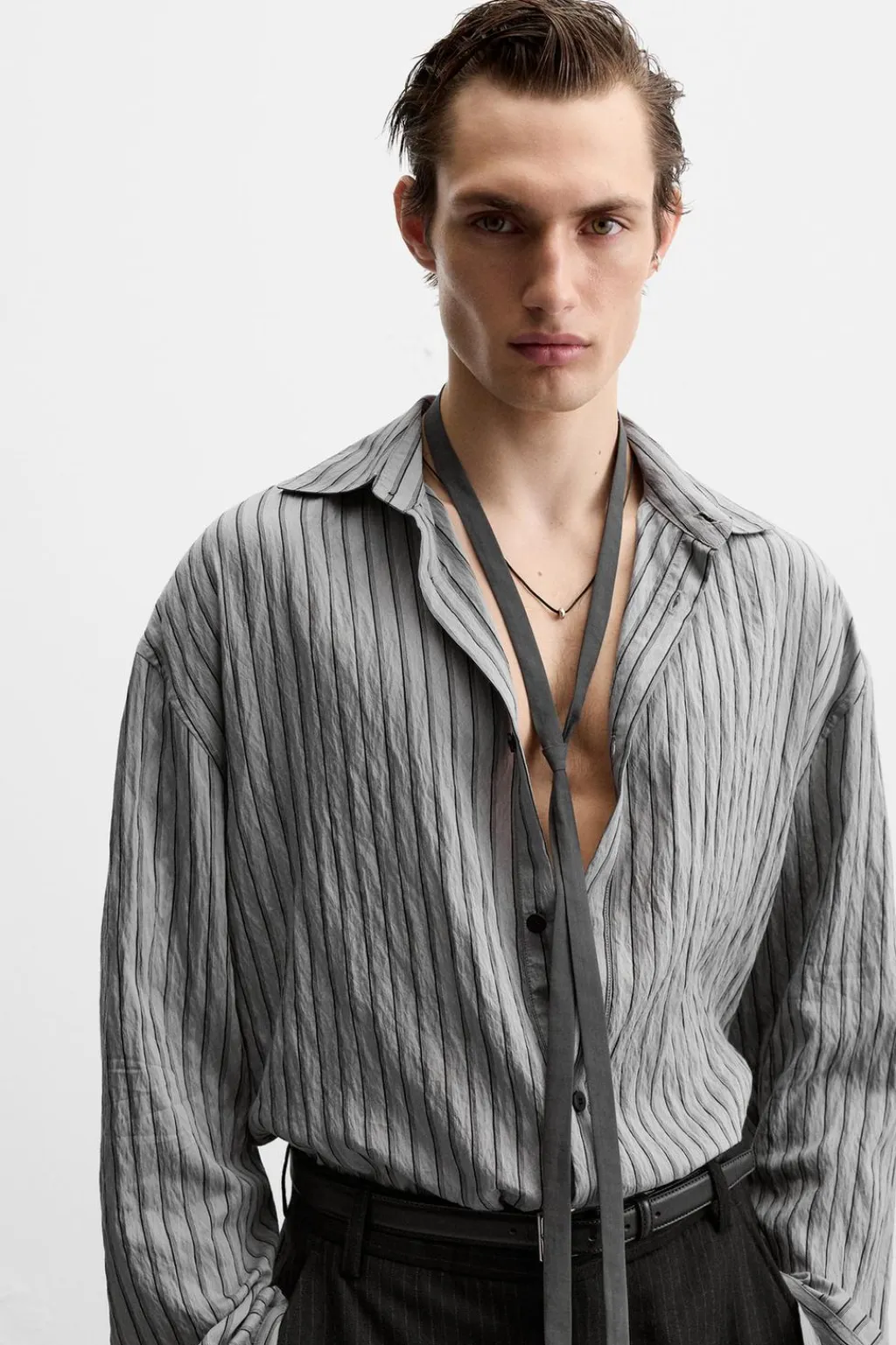 Camisa relaxed fit confeccionada en tejido con viscosa. Cuello solapa y manga larga acabada en puño con botón. Cierre frontal de botonadura.