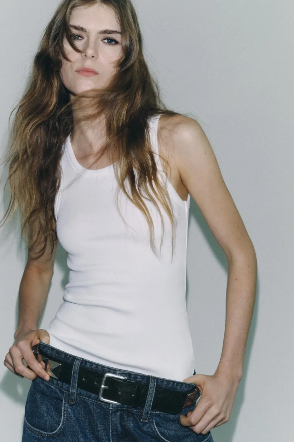 Camiseta confeccionada en hilatura con mezcla de lyocell. Escote redondo y manga sisa.