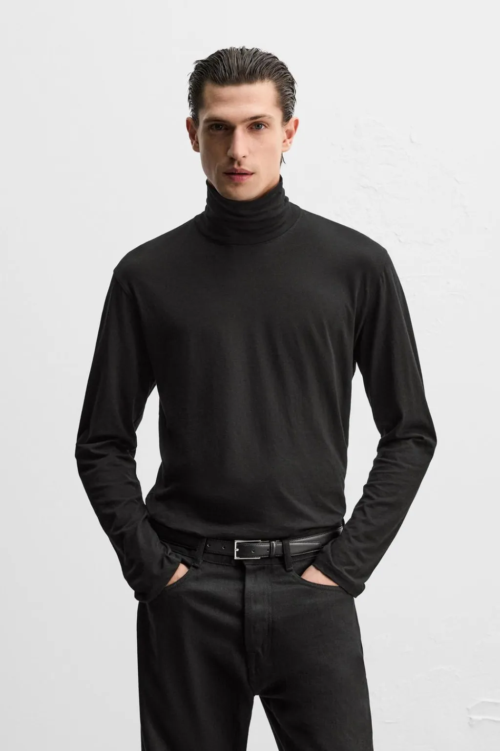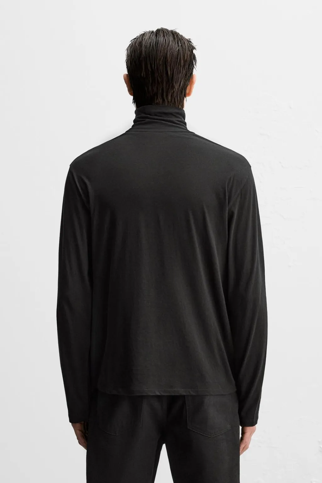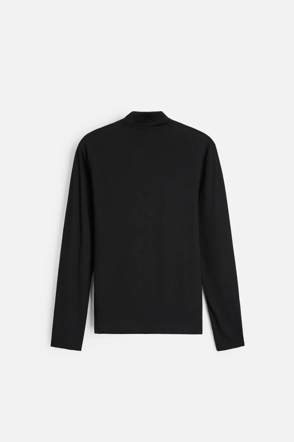 Camiseta regular fit confeccionada en tejido ligero de algodón. Cuello perkins y manga larga.