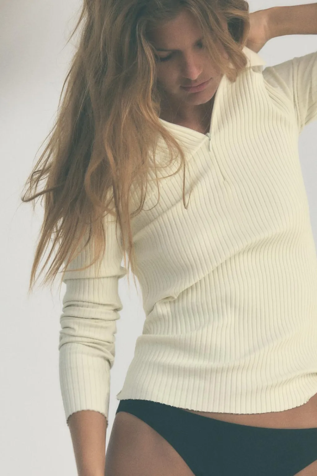 Camiseta con cuello polo y manga larga. Cierre frontal con cremallera.