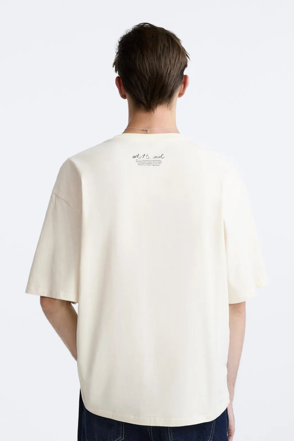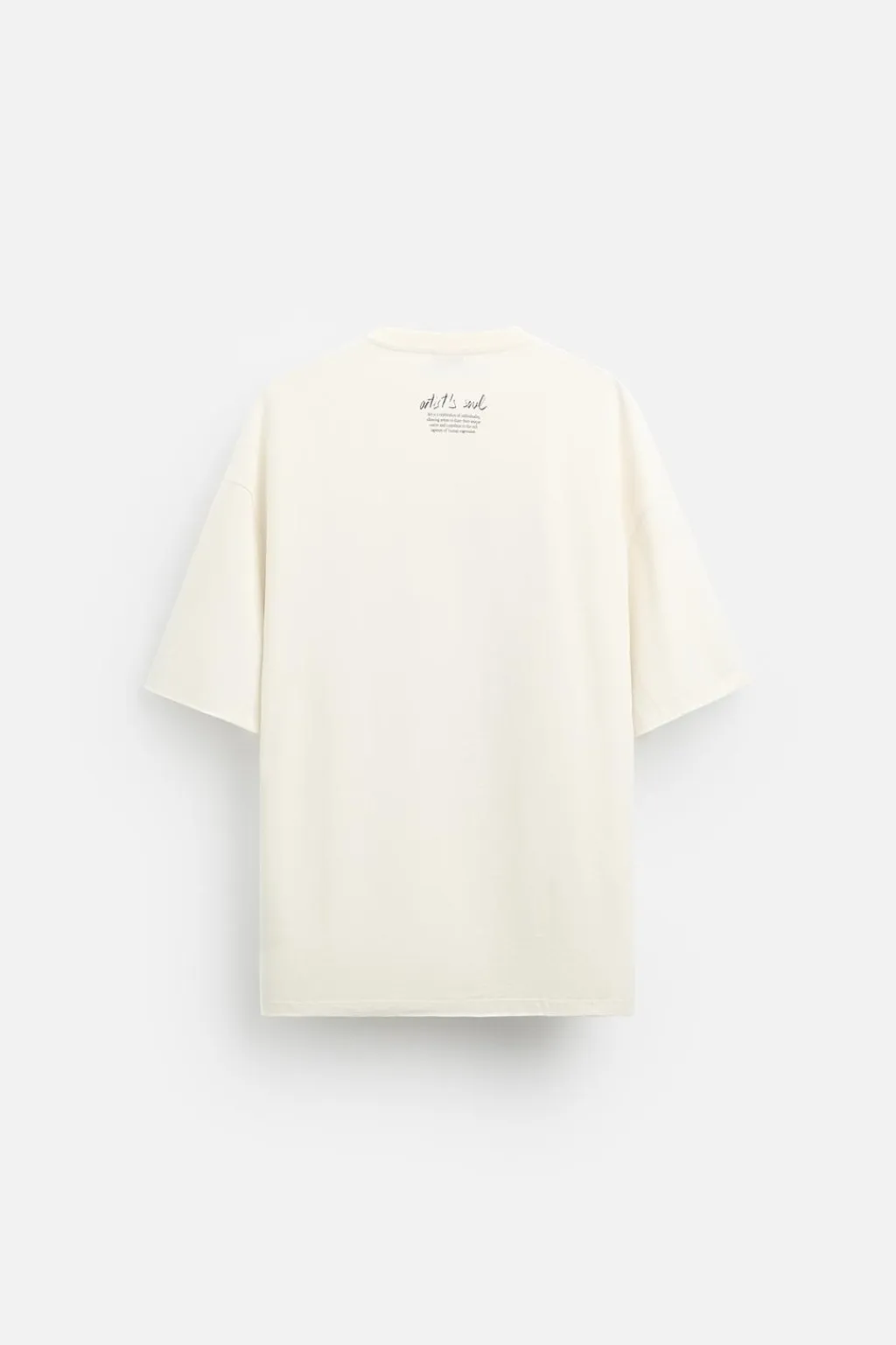 Camiseta relaxed fit. Cuello redondo y manga corta. Estampado combinado a contraste en delantero
