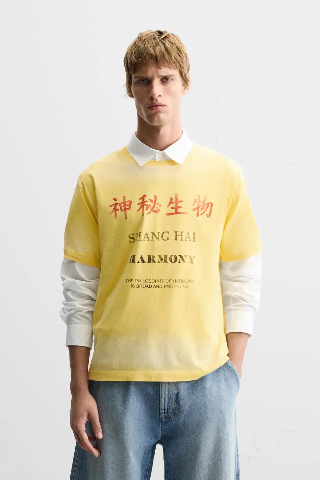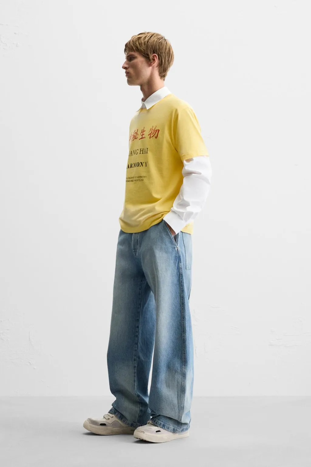 Camiseta relaxed fit. Cuello redondo y manga corta. Texto estampado combinado a contraste en delantero.
