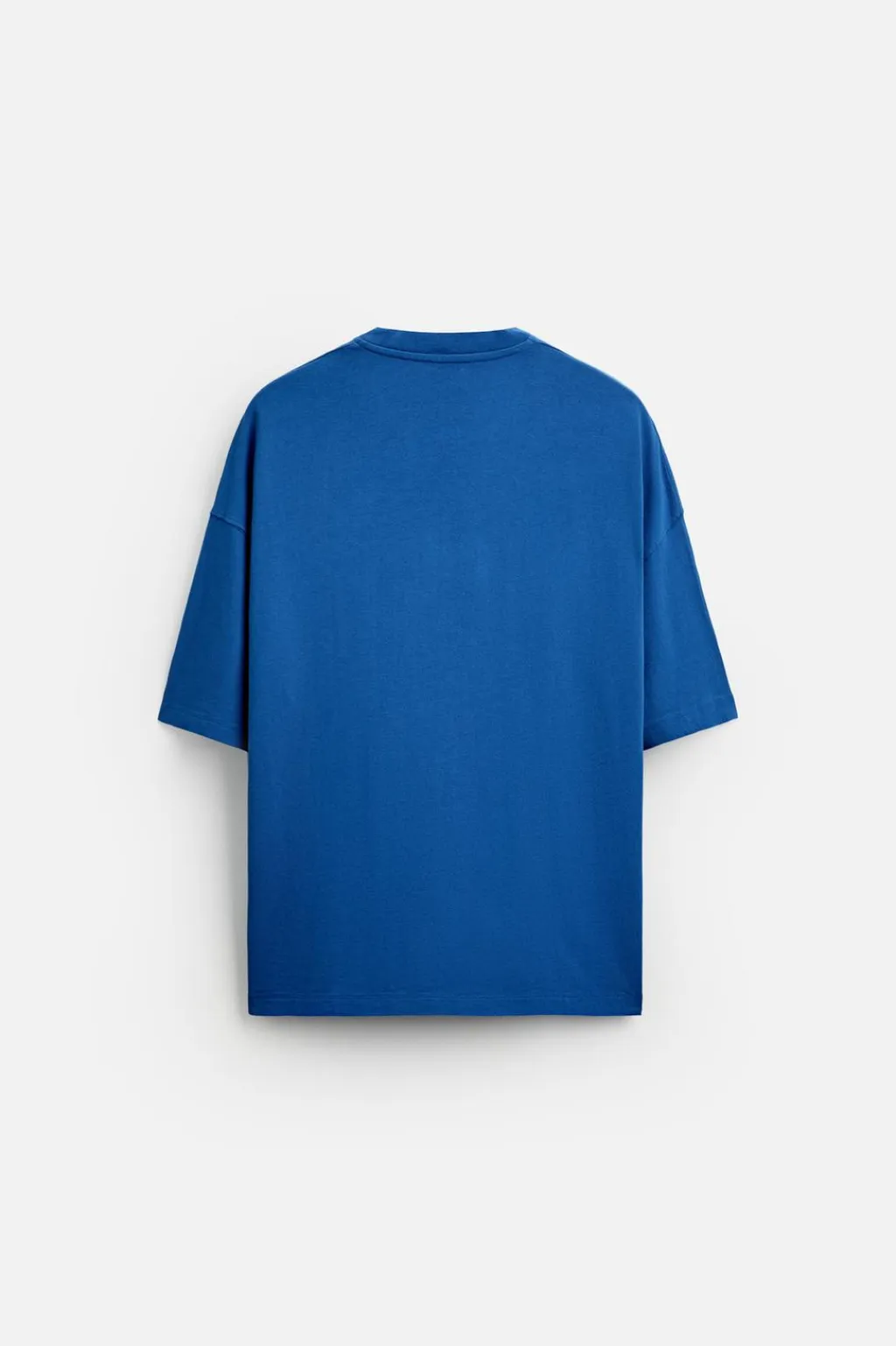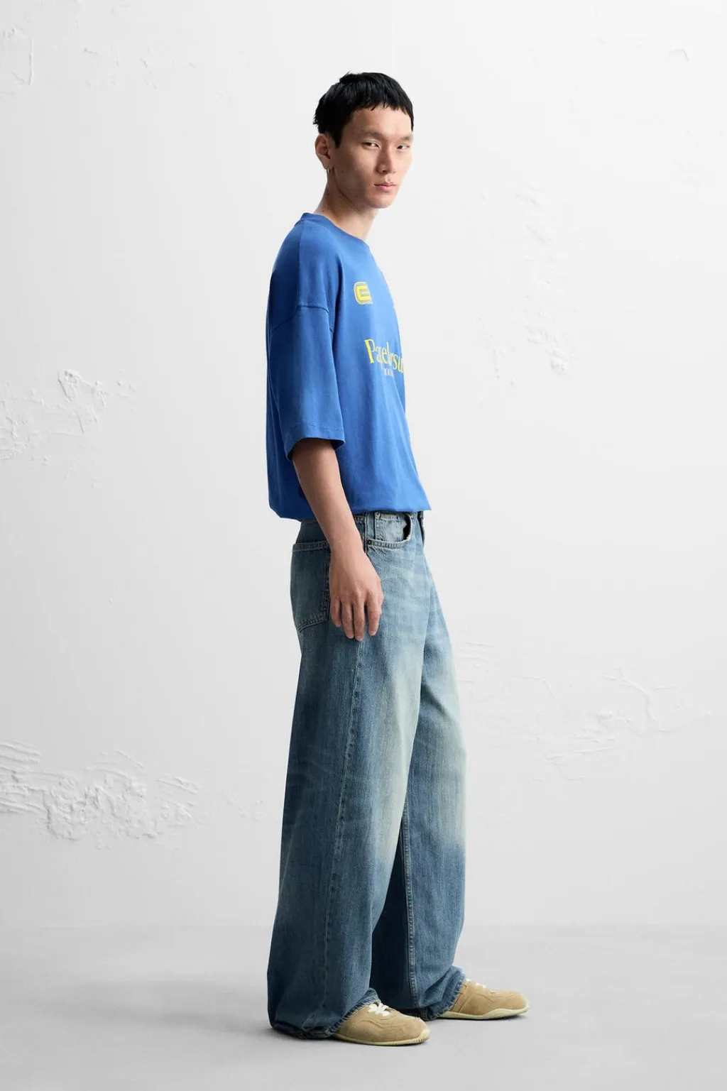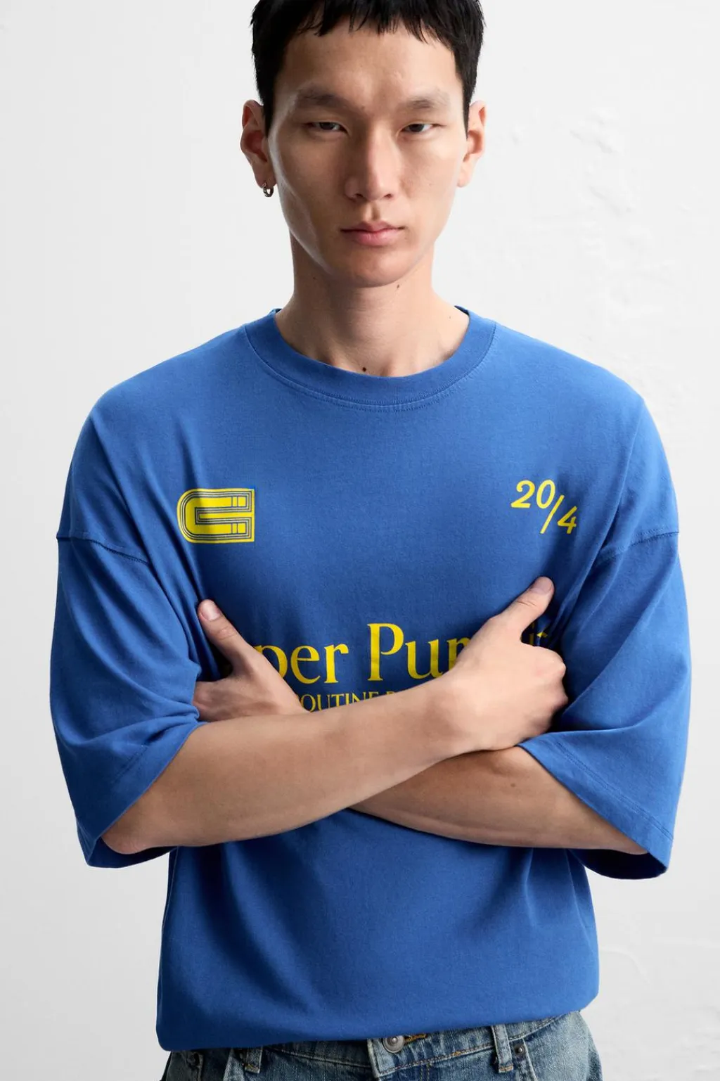 Camiseta relaxed fit. Cuello redondo y manga corta. Estampaciones combinadas a contraste en delantero y espalda.