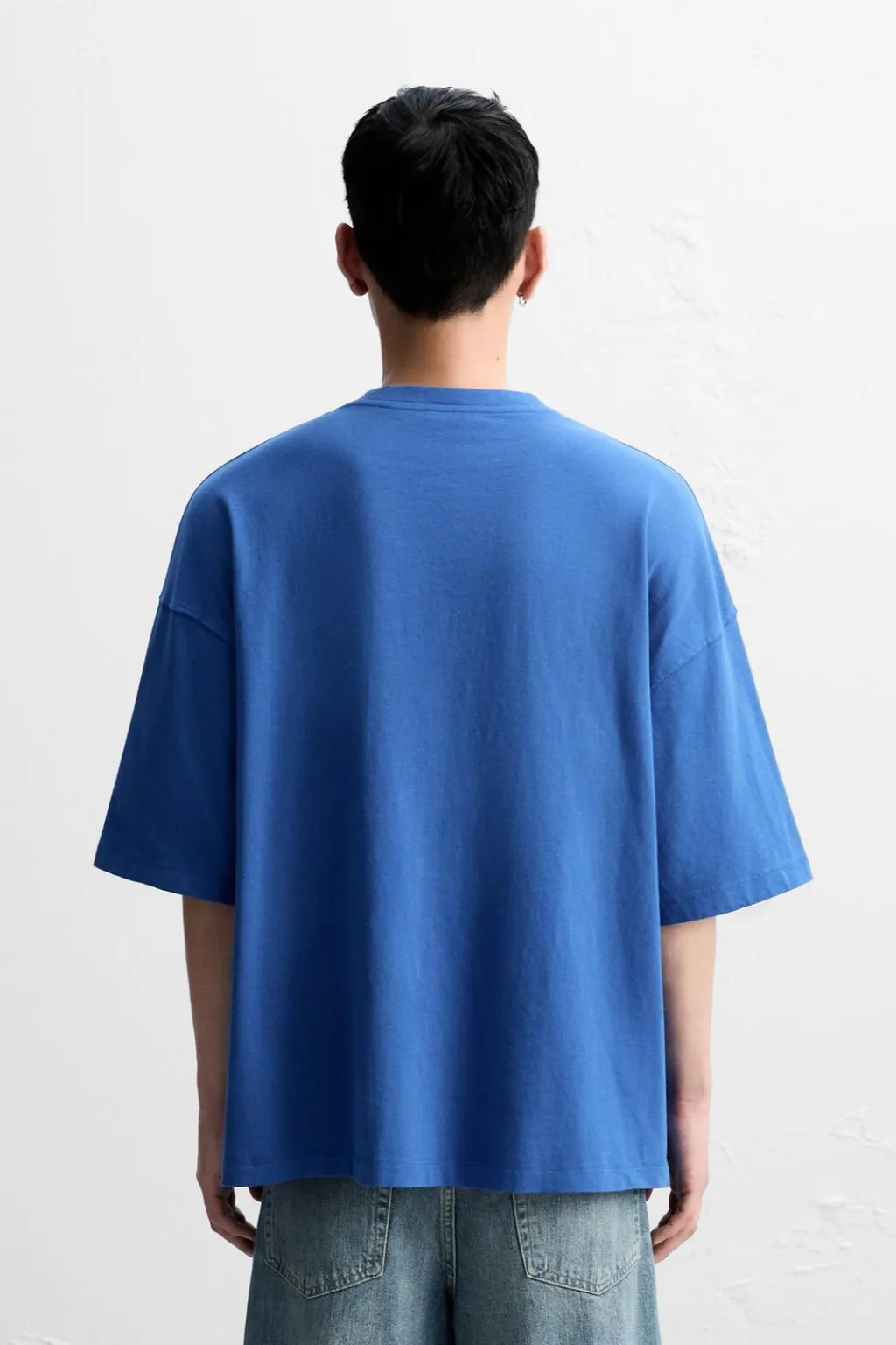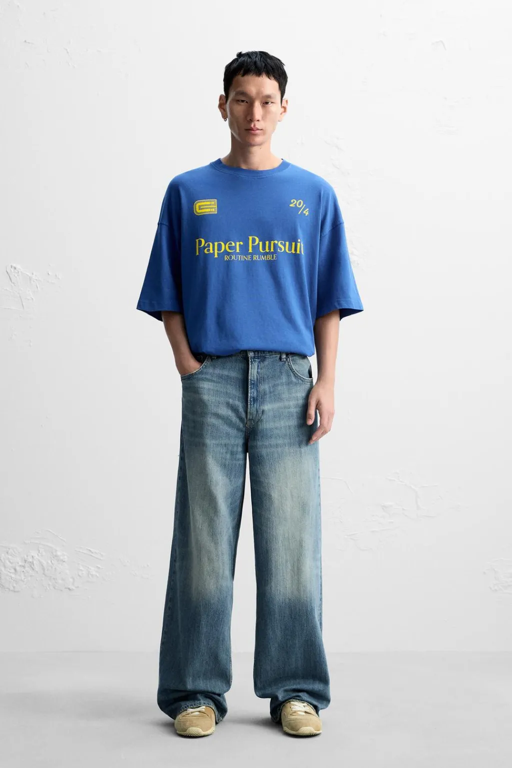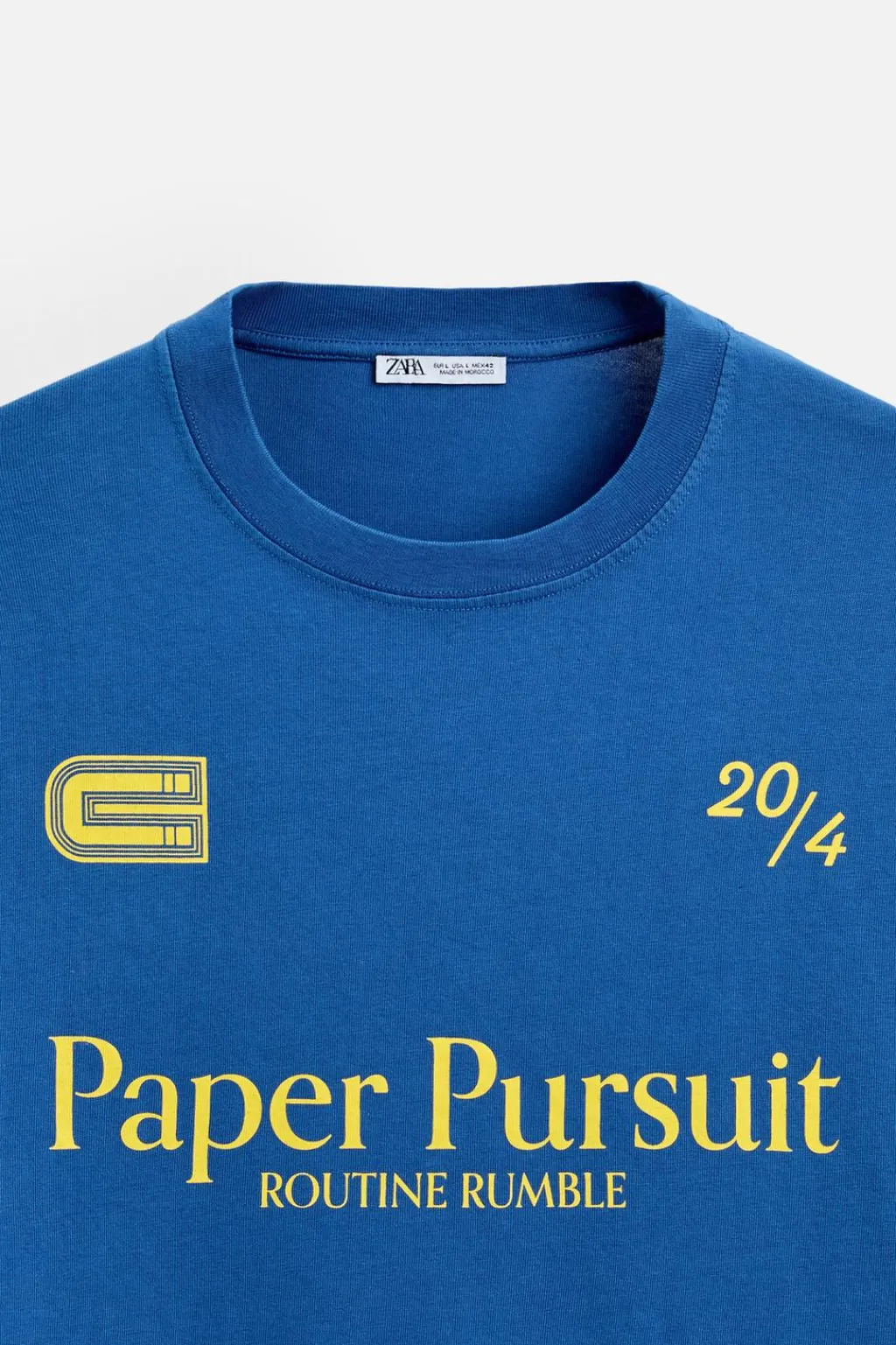 Camiseta relaxed fit. Cuello redondo y manga corta. Estampaciones combinadas a contraste en delantero y espalda.
