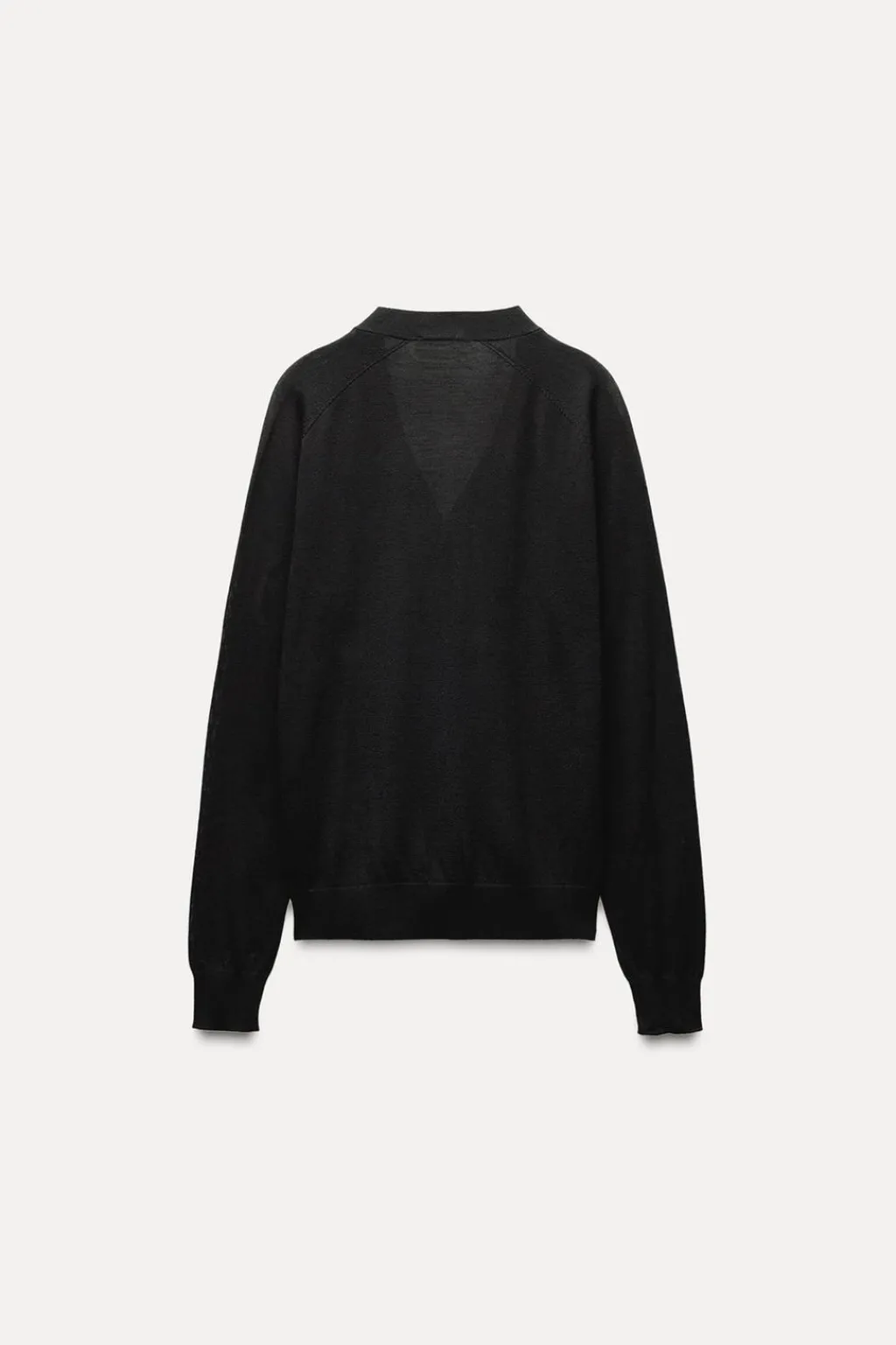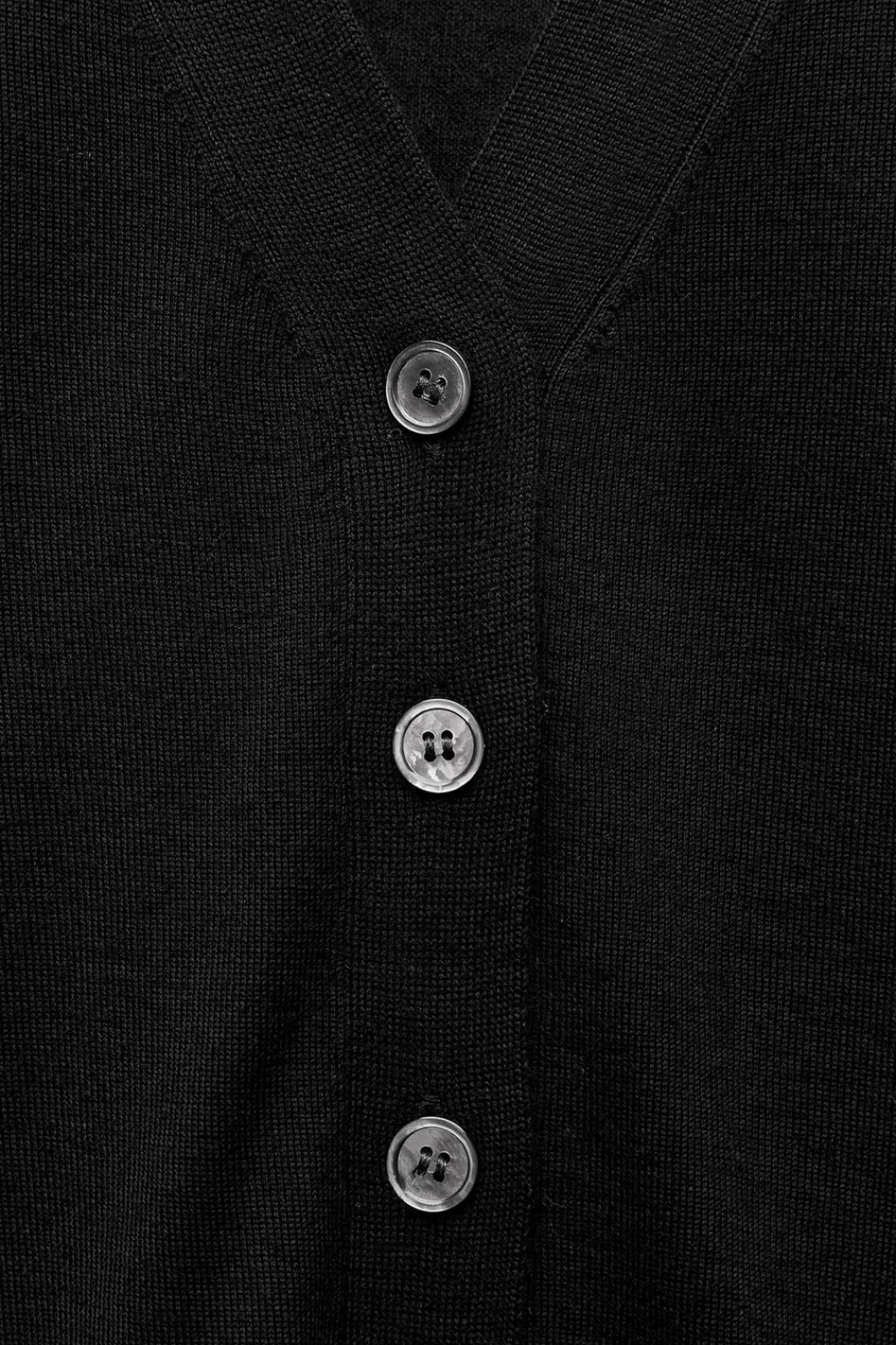 Chaqueta de punto fino confeccionada en 100% lana. Escote pico y manga larga. Cierre frontal con botones.