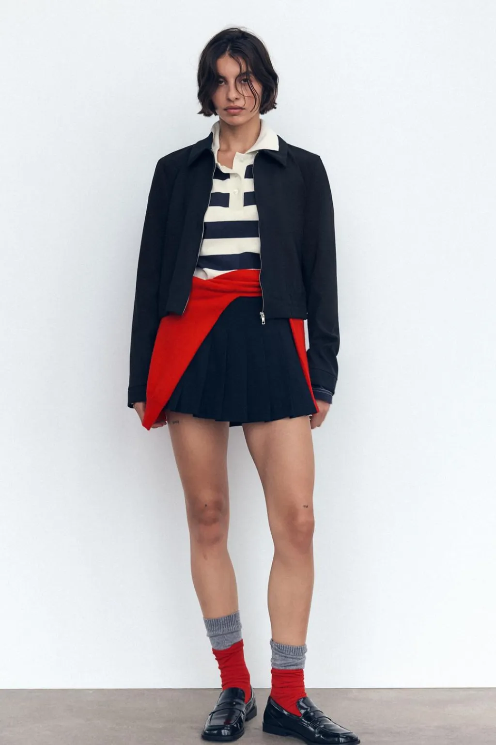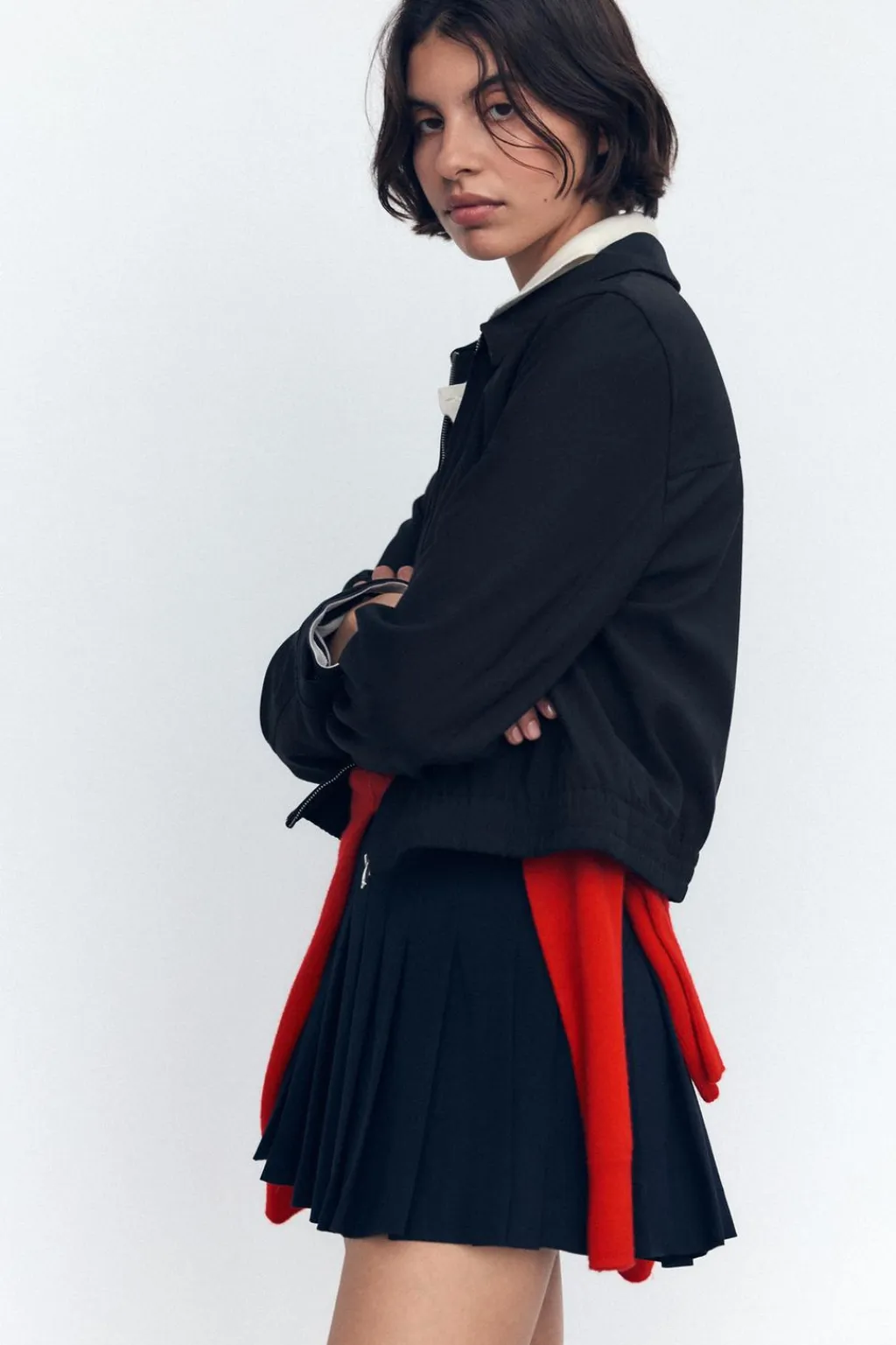 Chaqueta corta de cuello solapa. Manga larga acabada en puño. Bolsillos de vivo en delantero. Forro interior. Bajo acabado en elástico. Cierre frontal con cremallera.