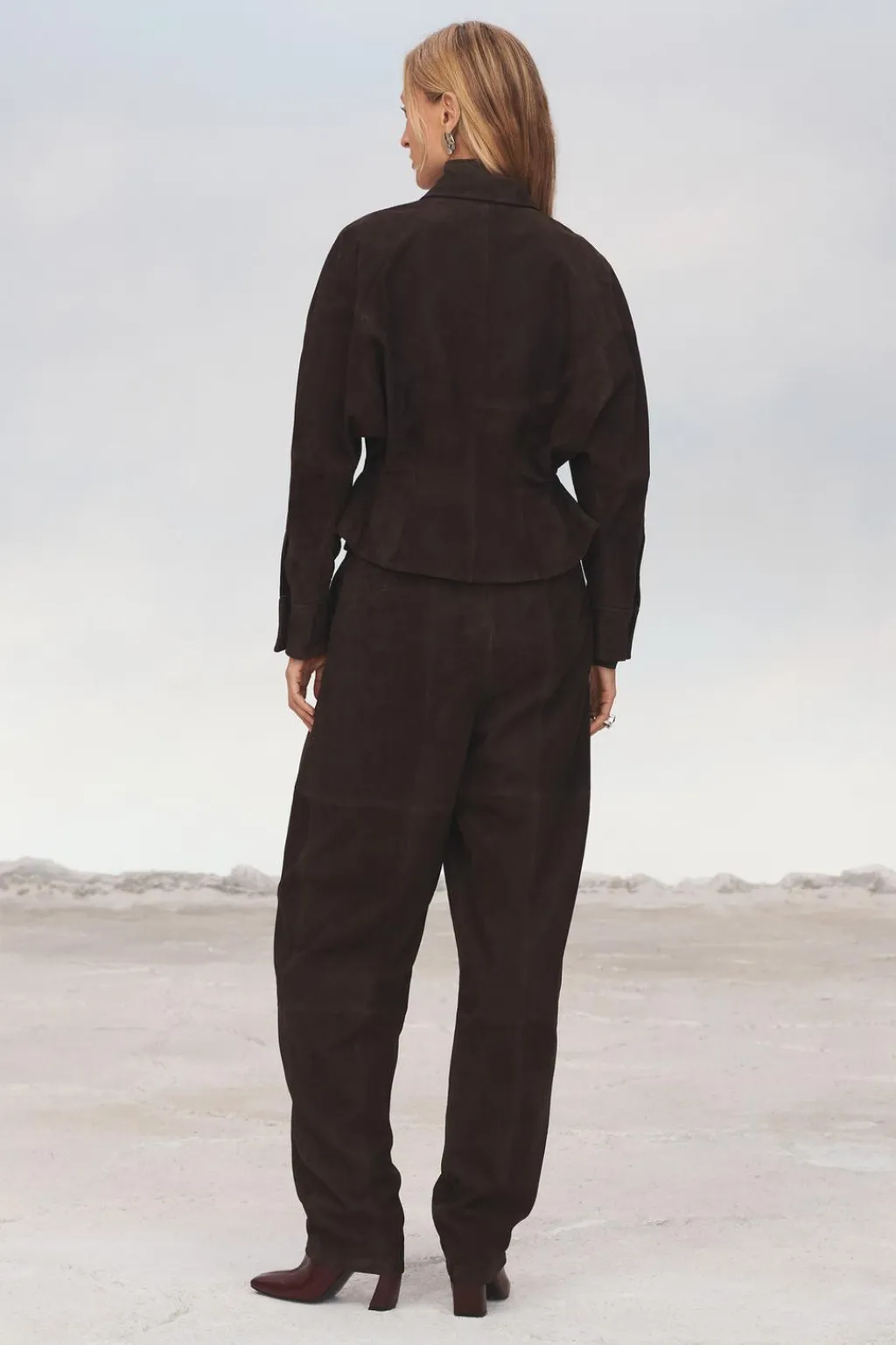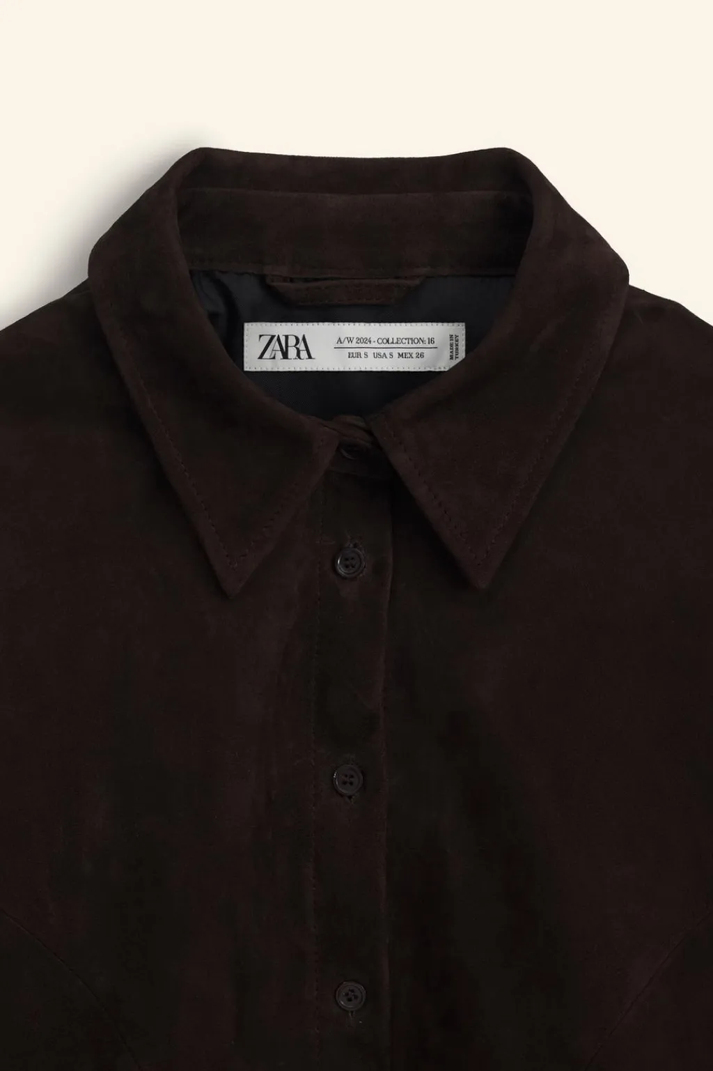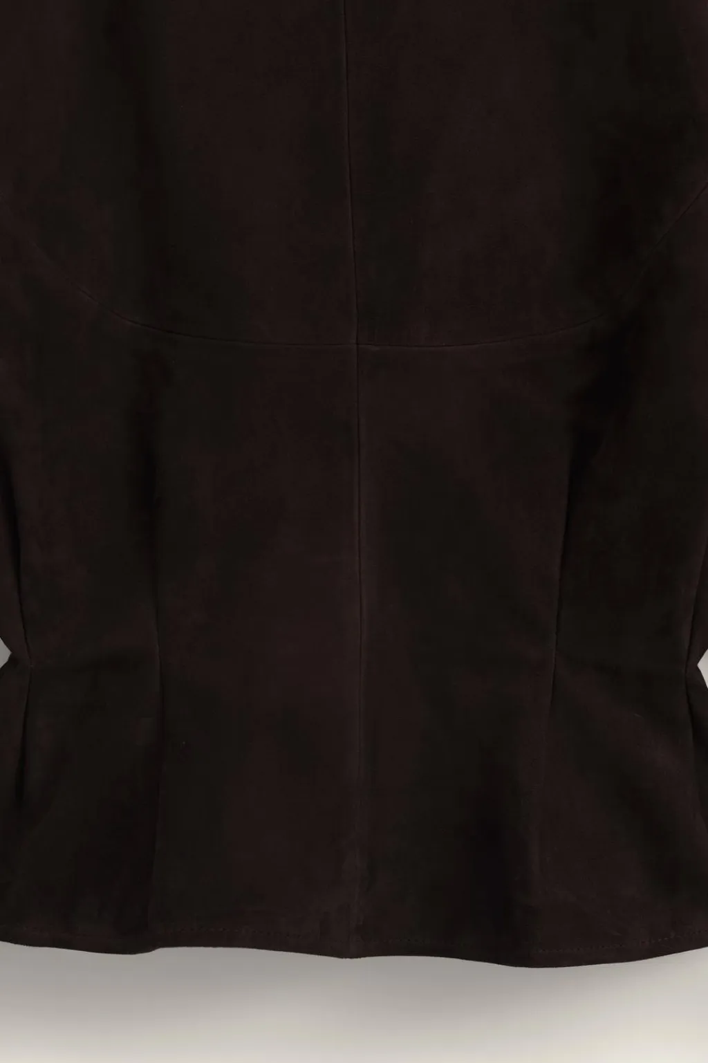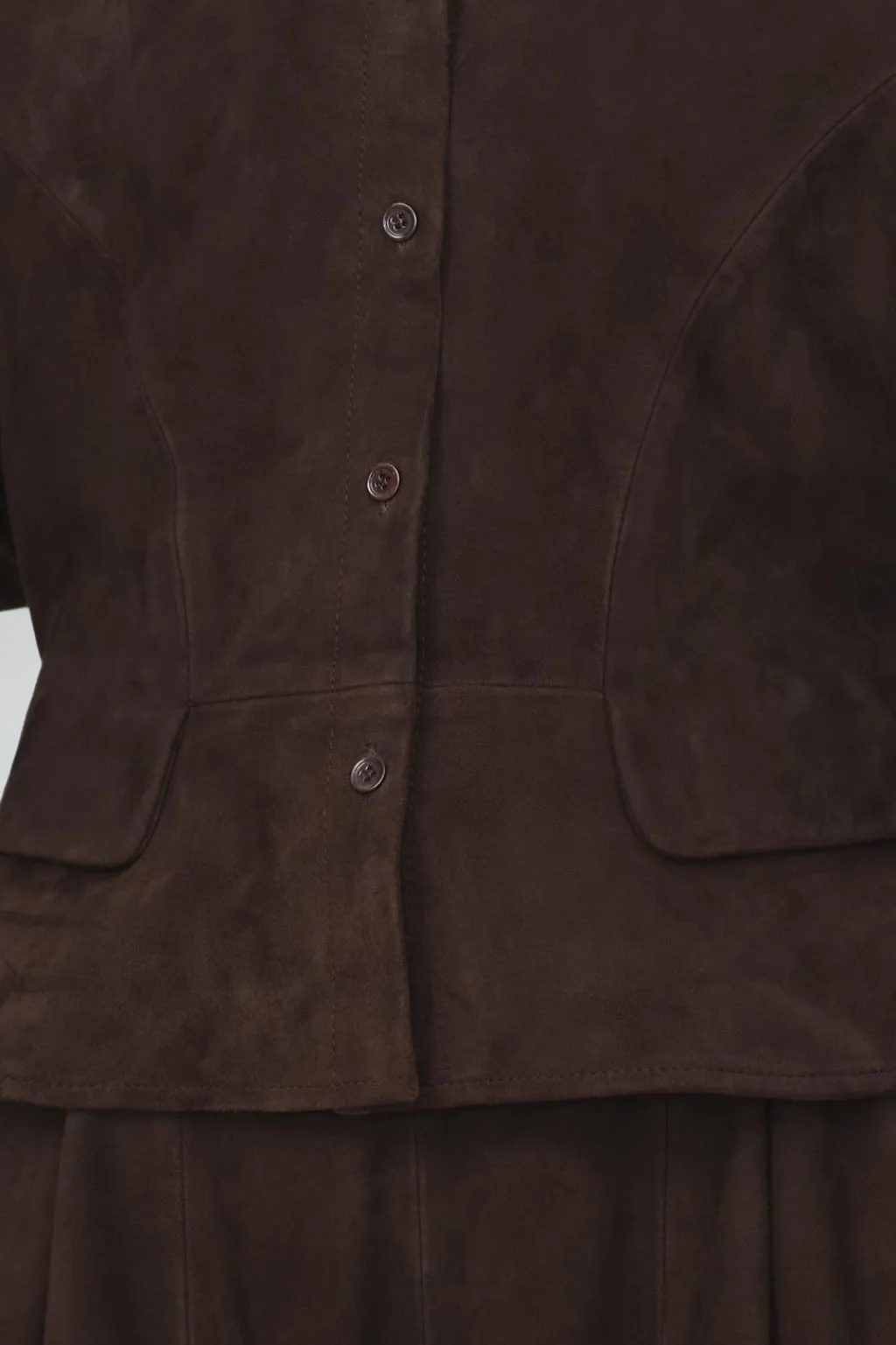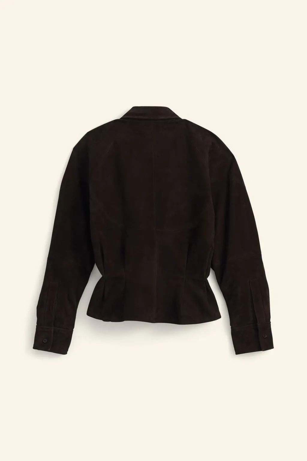 Chaqueta realizada en piel de ante 100%. Cuello solapa y manga larga acabada en puño. Bolsillos con solapa en delantero. Detalle de pliegues en cintura. Forro interior. Cierre frontal con botones.
