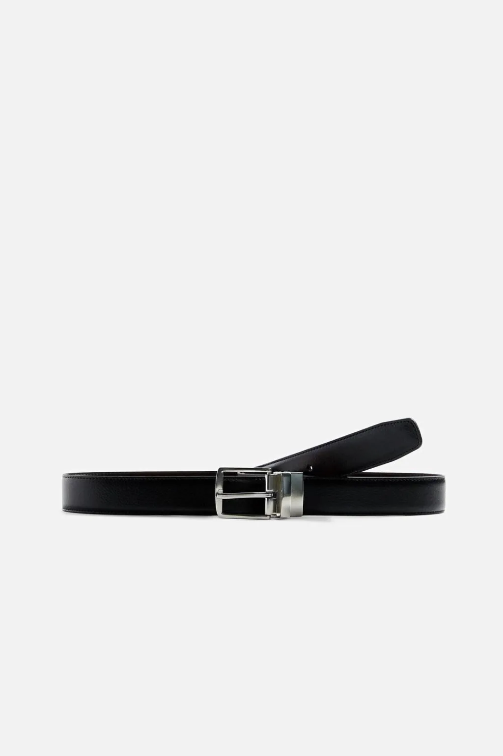 Cinturón reversible confeccionado en piel. Cierre con hebilla y pasador metálicos.