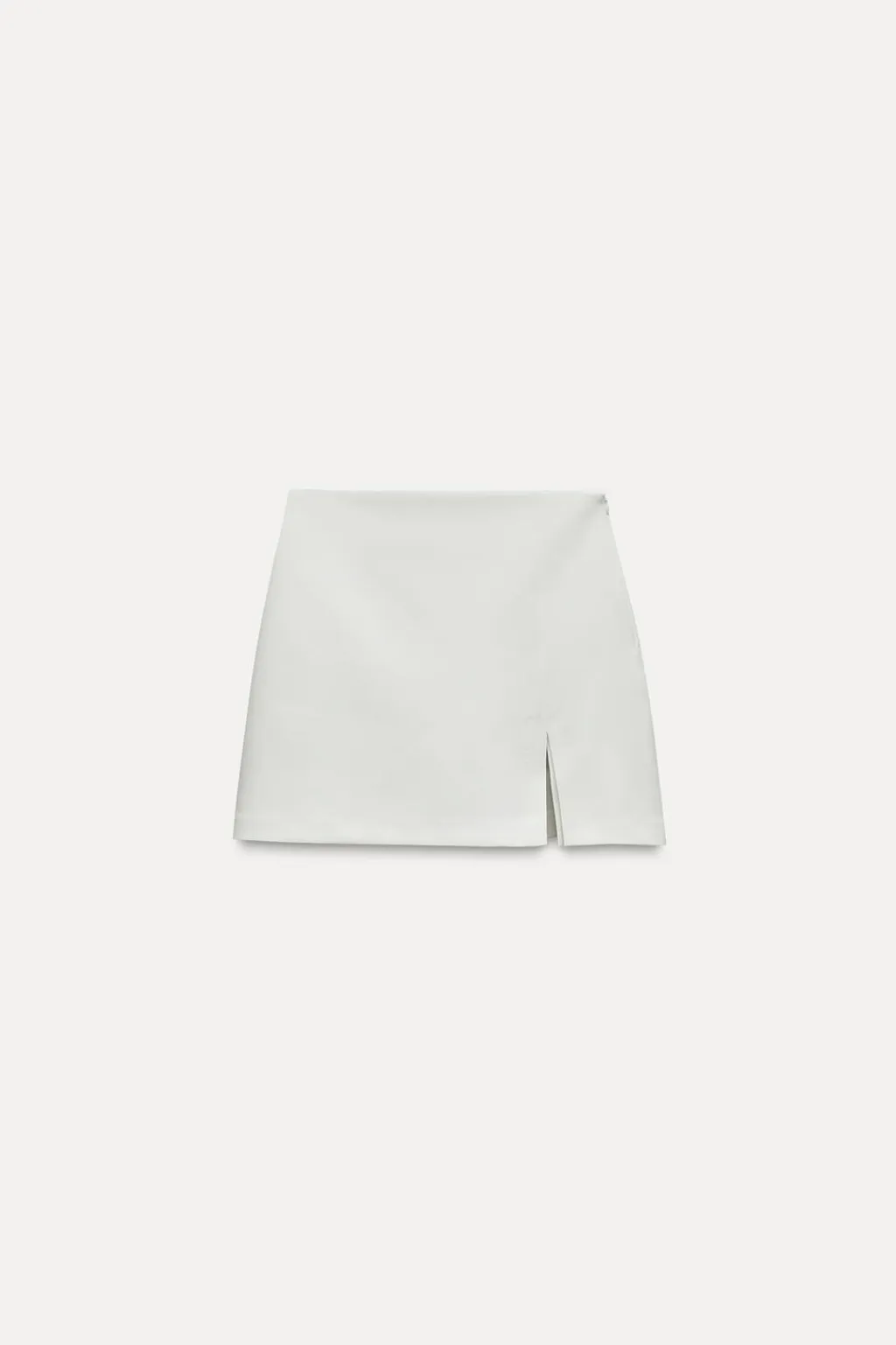 Falda pantalón de tiro alto. Bajo con abertura frontal. Cierre lateral con cremallera oculta en costura.
