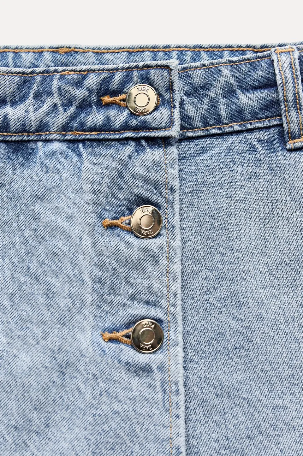 Falda pantalón de tiro alto con bolsillos delanteros y bolsillos de plastrón en espalda. Efecto lavado. Cierre frontal cruzado con cremallera oculta y botones metálicos.