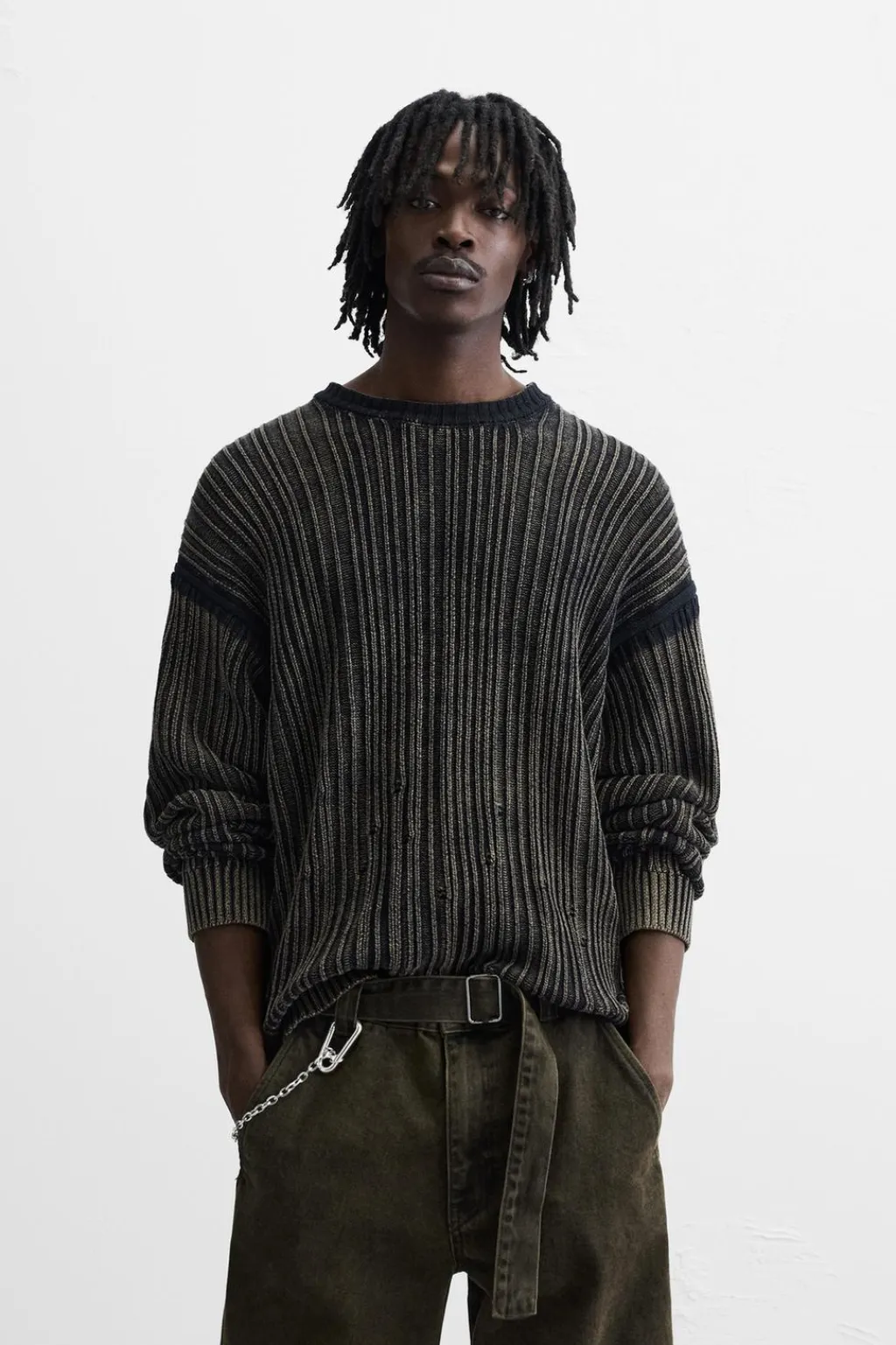 Jersey relaxed fit tejido en hilatura de algodón. Cuello redondo y manga larga. Efecto lavado. Acabados en rib.