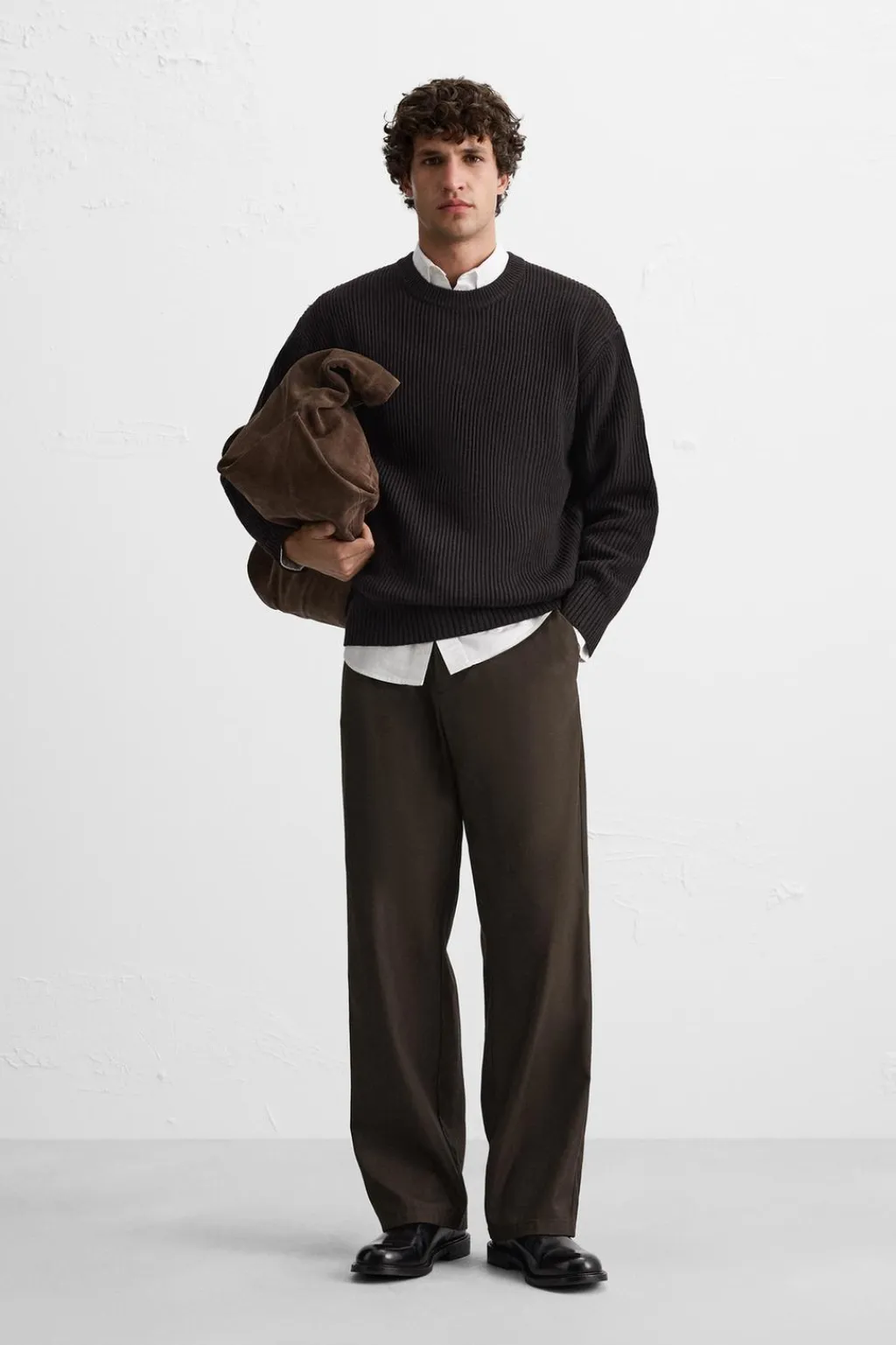 Jersey relaxed fit. Cuello redondo y manga larga. Acabados en rib.